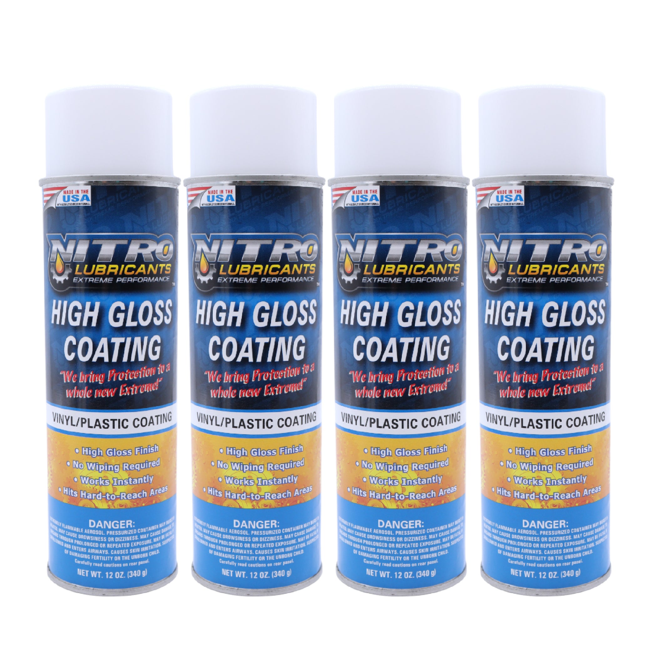 Nitro Lubricants High Gloss Coating – Vinyl & Plastic Shine – Water-Resistant Protection, Instant No-Wipe Formula Reaches Hard Areas – Automotive, Industrial, Off-Road – 12 oz – Made in USA (4-Pack)