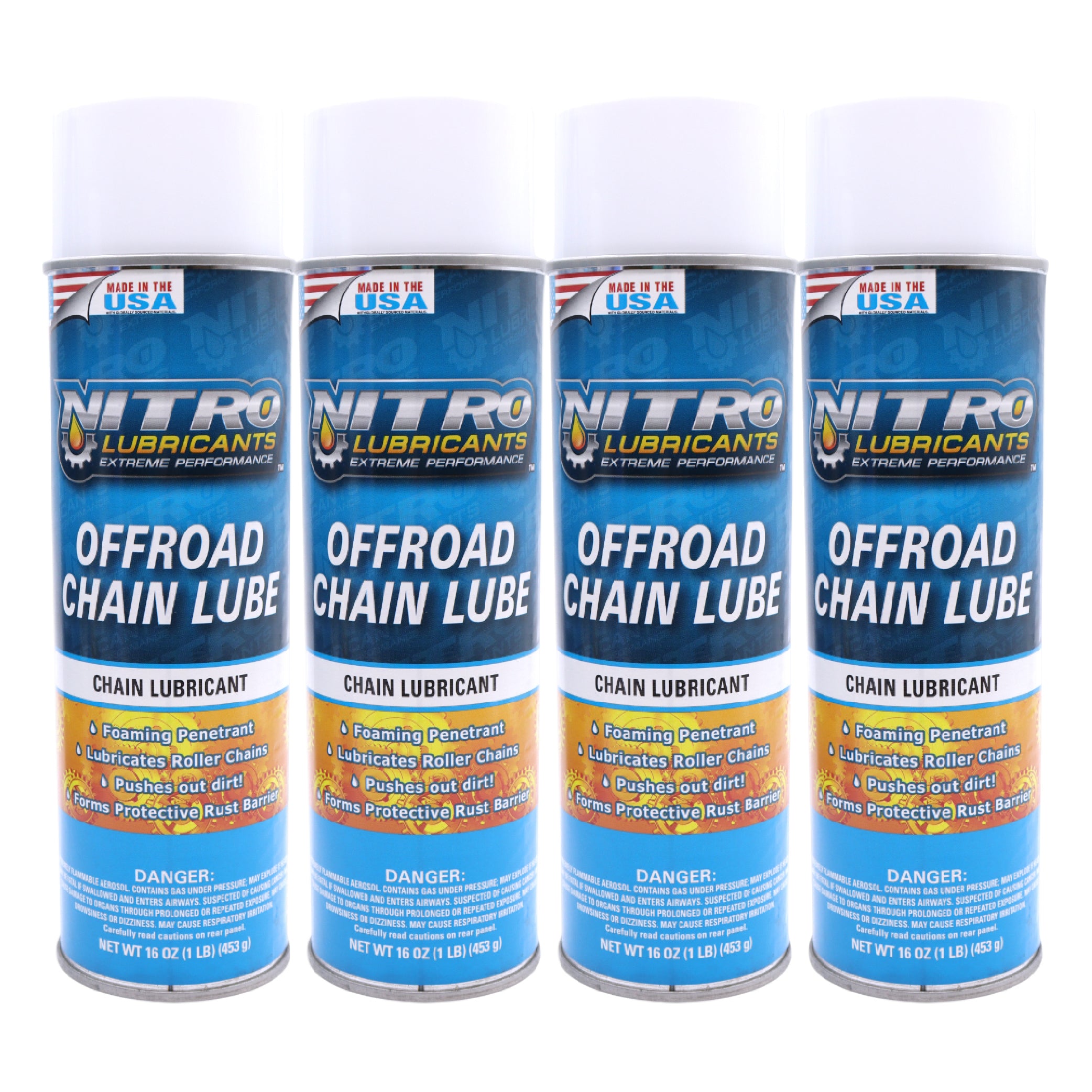 Nitro Lubricants Off-Road Chain Lube – Thick Clinging Foam Lubricates & Penetrates Rollers to Protect Against Corrosion, Friction & Wear – 12 oz – Made in USA (4-Pack)