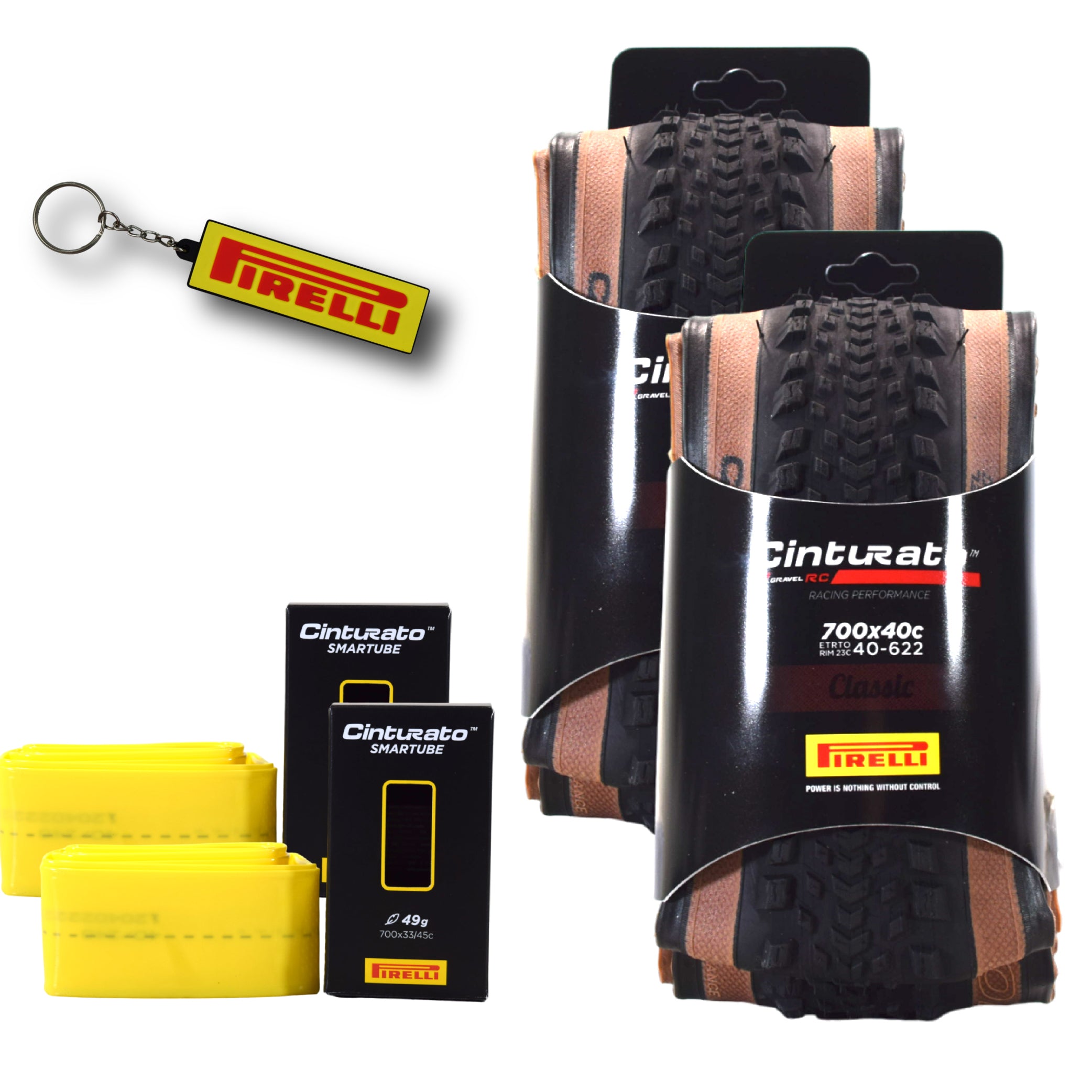Pirelli Cinturato Gravel RC Classic 40-622 (700 x 40c) Race Bicycle Tire & 33/45-622 Presta Cinturato SmarTUBE - SpeedGrip Compound, Tubeless Ready Bike Tire with Keychain (2 Pack Tires & Tubes)