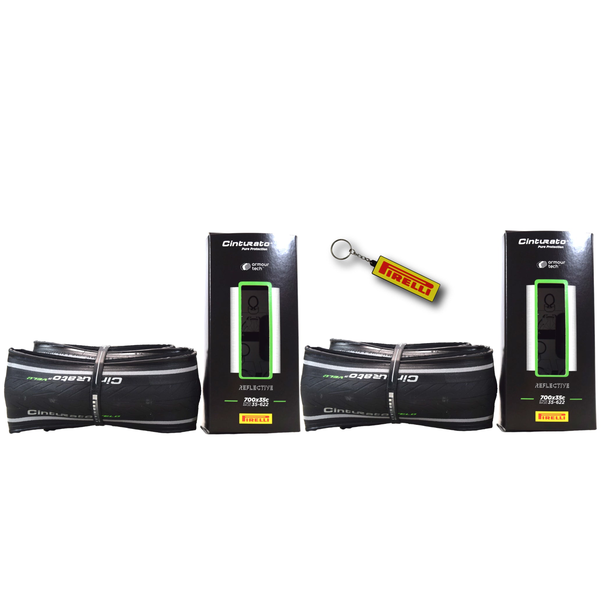 Pirelli Cinturato Velo TLR Reflective 35-622 (700 x 35c) Road Bicycle Tire - Armour Tech, Clincher Type, Tubeless Ready Bike Tire with Keychain 700x35c (2 Pack)
