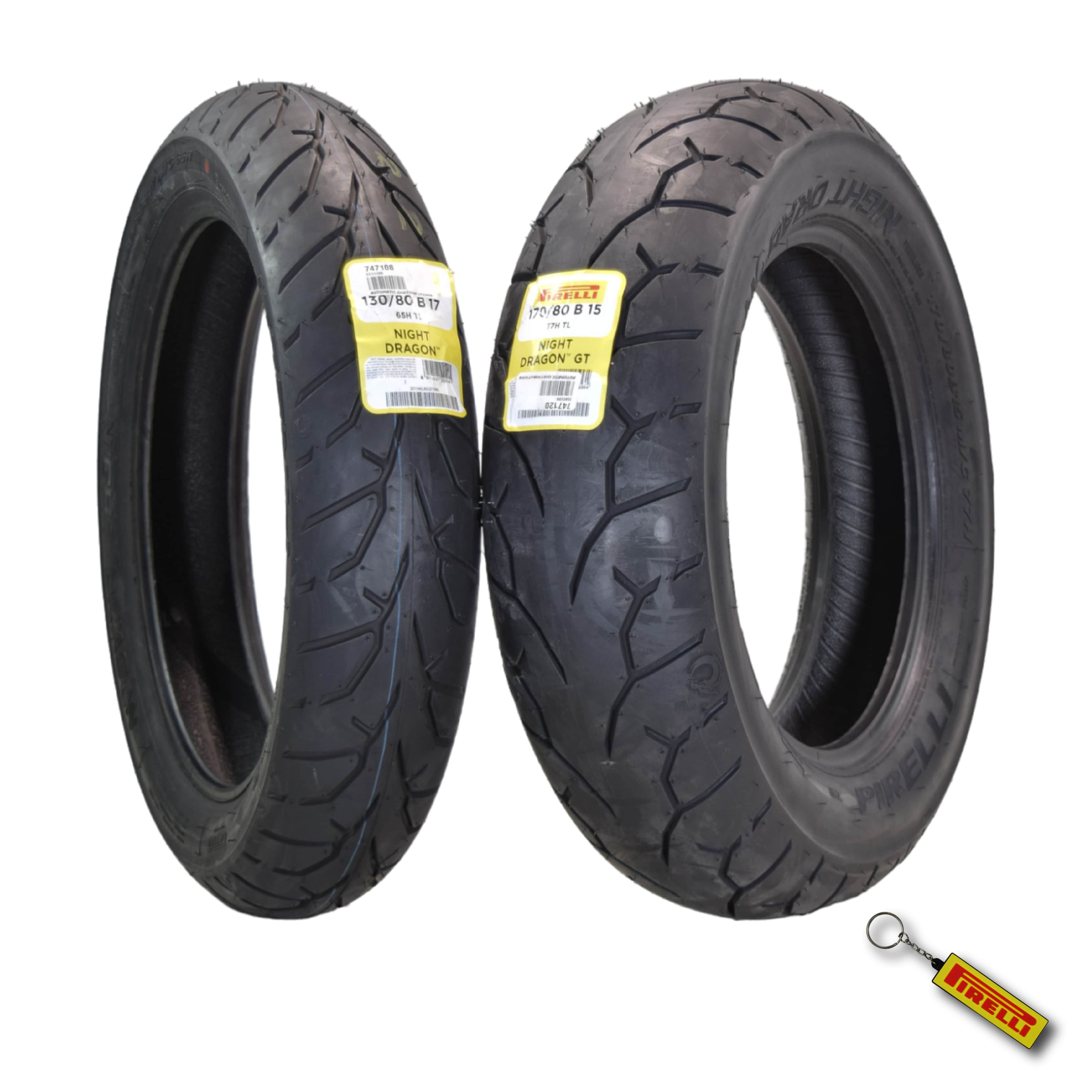 Pirelli Night Dragon 130/80B17 170/80B15 Front Rear Cruiser Motorcycle Tires Set w/Keychain