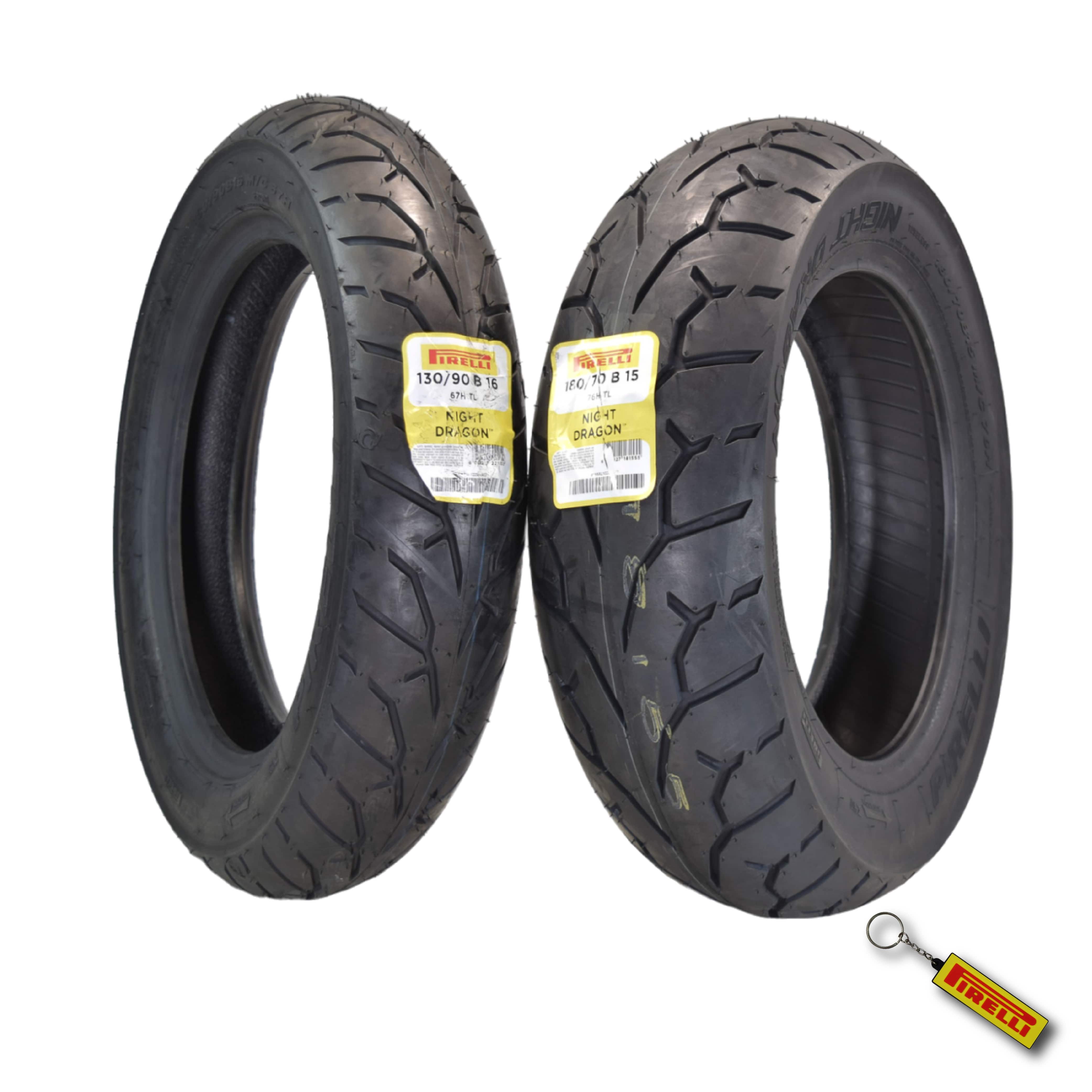 The Pirelli Night Dragon Tire Set includes the 130/90B16 M/C 73H REINFTL front tire and the 180/70R15 M/C 76H TL rear tire, offering the perfect blend of performance, durability, and comfort, specifically designed for high-performance cruiser motorcycles. These tires fit a wide range of cruiser models, making them a versatile and practical choice for many riders.