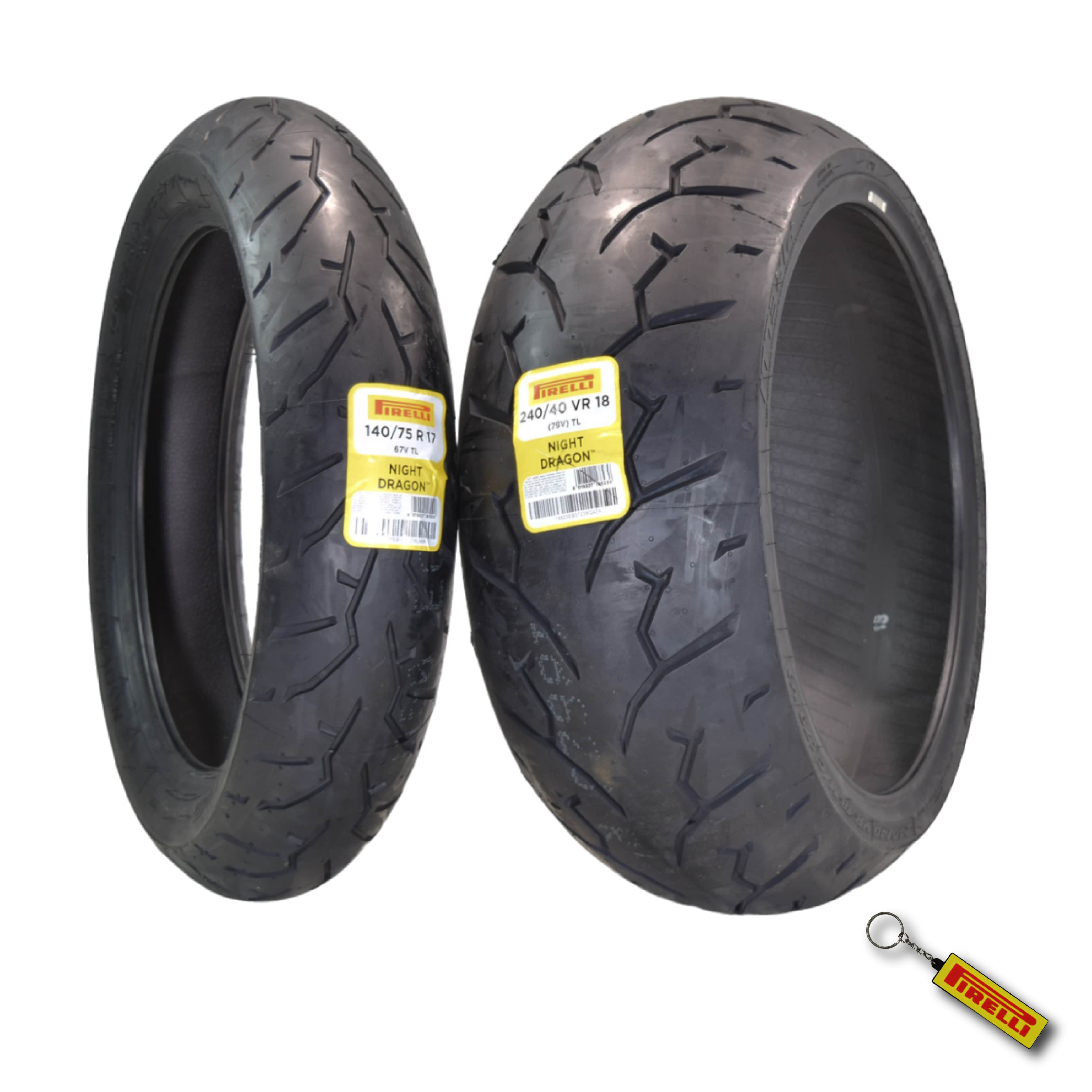 The Pirelli Night Dragon Tire Set includes the 140/75R17 M/C 67V TL front tire and the 240/40VR18 M/C 79V TL rear tire, offering the perfect blend of performance, durability, and comfort, specifically designed for high-performance cruiser motorcycles. These tires fit a wide range of cruiser models, making them a versatile and practical choice for many riders.