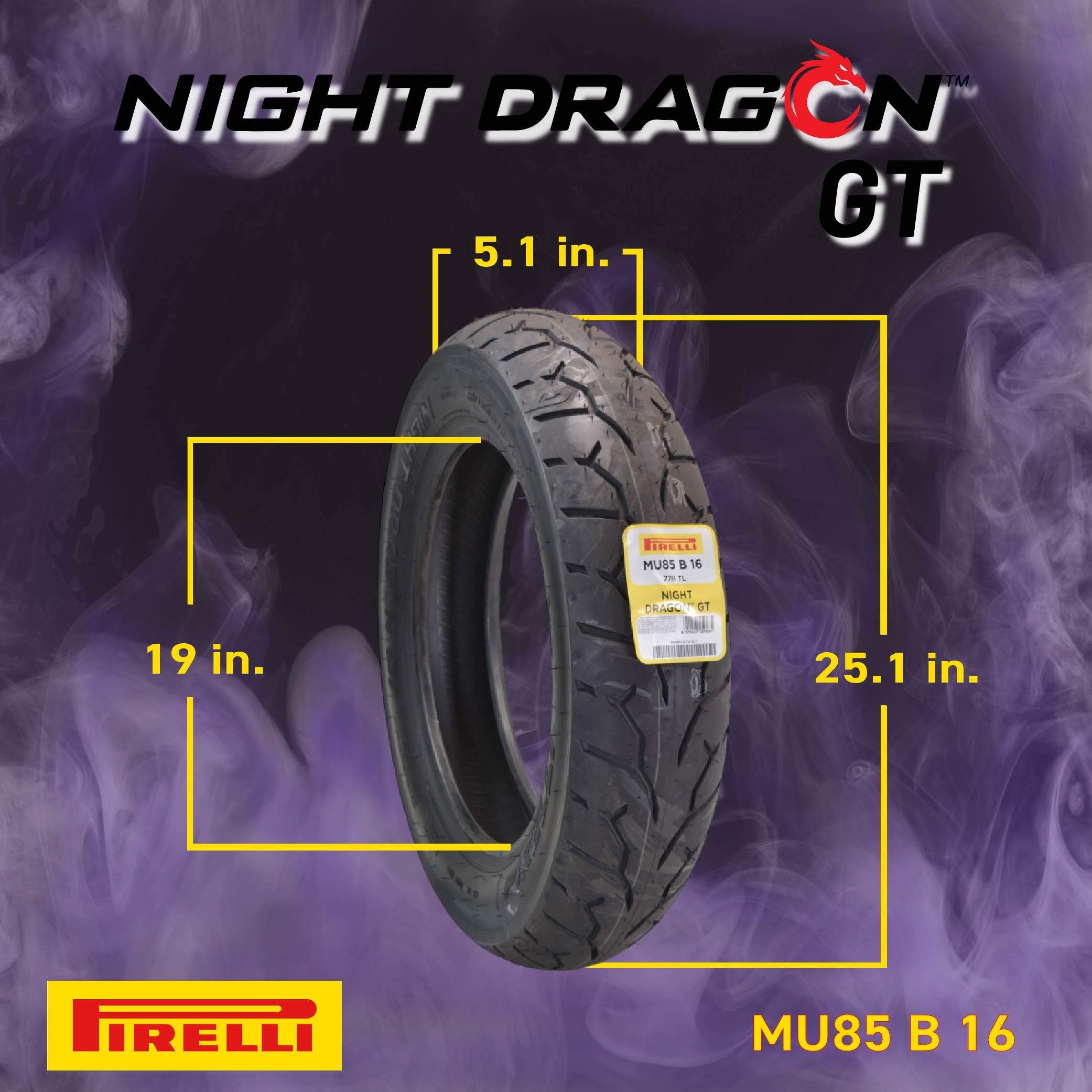 The Pirelli Night Dragon GT takes everything that makes the original Night Dragon great, and turns it up a notch. The Night Dragon GT was designed for the riders that want to get as much performance out of their equipment as they possibly can. Whether it's fast, straight-line acceleration or cornering, the Night Dragon handles it all. With EPT technology, the Night Dragon optimizes contact area between tire and road to improve stability and acceleration. It also showcases a great balance between reliability and tire life. These tires were designed to handle large V-Twins that produce high power and torque. The GT lasts up to 20% longer than the original Night Dragon and features a "Full Carbon Black" compound. The best part? The GT is mixable with all Night Dragon front tires. It's time to get rid of those old tires and start riding a Night Dragon!