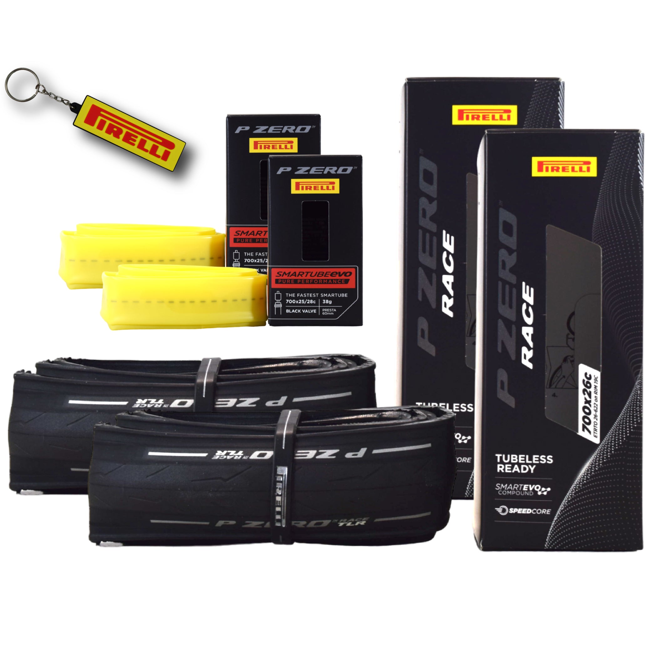 Pirelli P ZERO Race TLR 26-622(700x26c) & SmarTUBE EVO 25/28-622 700C Road Bike Tire & Presta Tube Set- Lightweight, Bicycle Tire & Tube Set for Road Racing - SmartEVO Compound w/Keychain (2Pk)