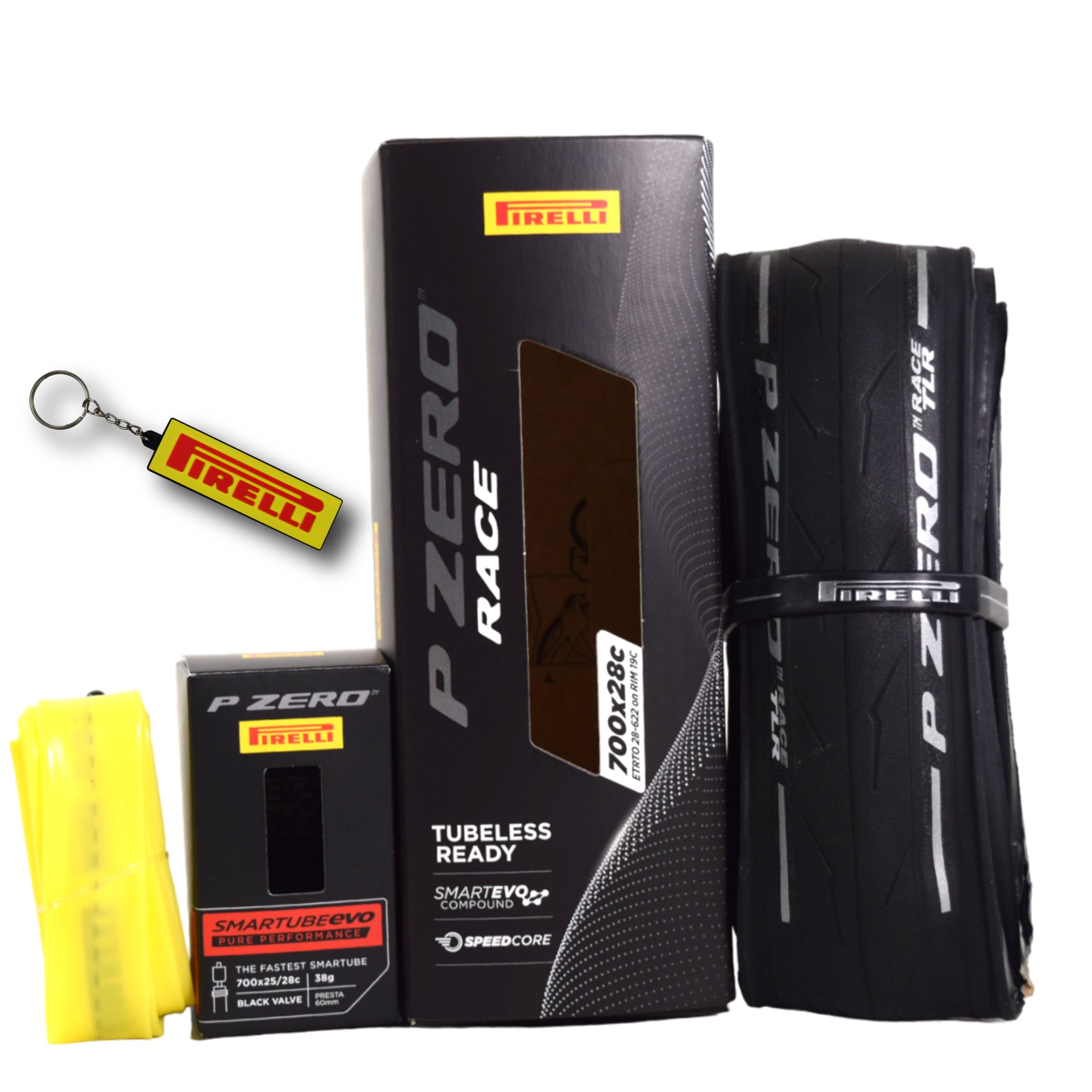 Pirelli P ZERO Race TLR 28-622(700x28c) & SmarTUBE EVO 25/28-622 700C Road Bike Tire & Presta Tube Set- Lightweight, Bicycle Tire & Tube Set for Road Racing - SmartEVO Compound w/Keychain