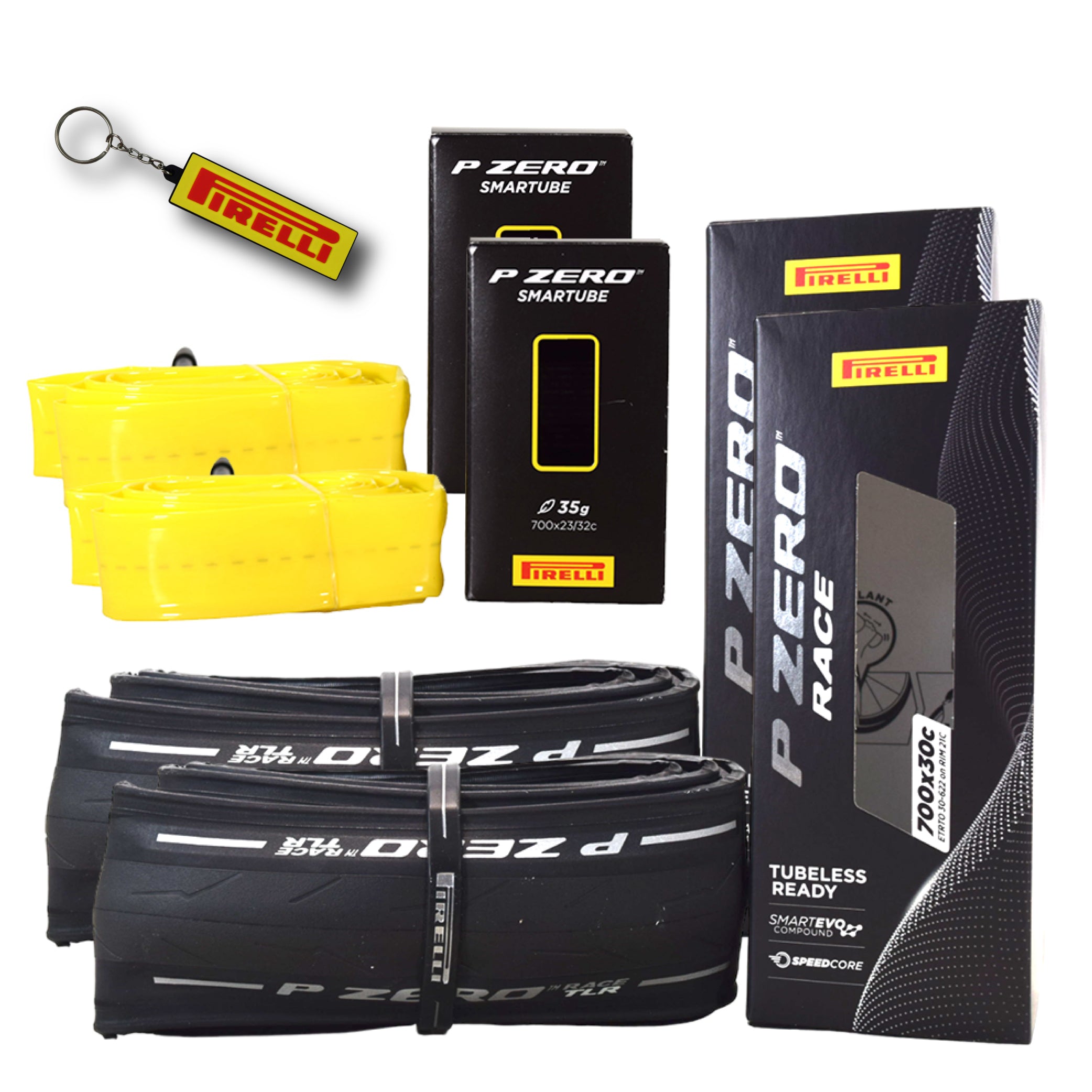 Pirelli P ZERO Race TLR 30-622(700x30c) & SmarTUBE 23/32-622 700C Road Bike Tire & Presta Tube Set- Lightweight, Bicycle Tire & Tube Set for Road Racing - SmartEVO Compound w/Keychain (2Pk)