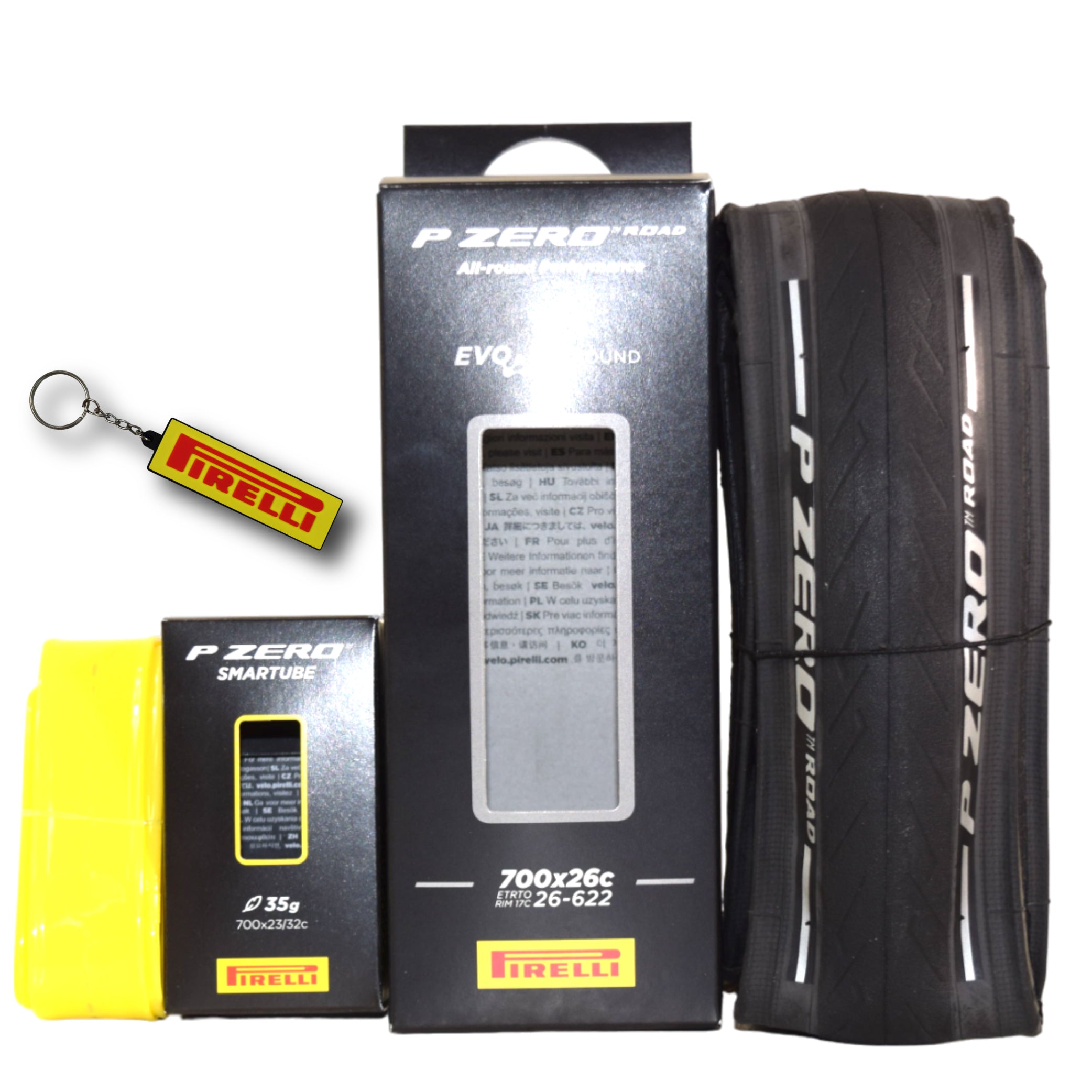 Pirelli P ZERO Road 26-622(700x26c) & SmarTUBE 23/32-622 700C Road Bike Tire & Tube Type Set- All-Season Performance, High Grip & Durability, Bicycle Tube&Tire Set- w/Keychain