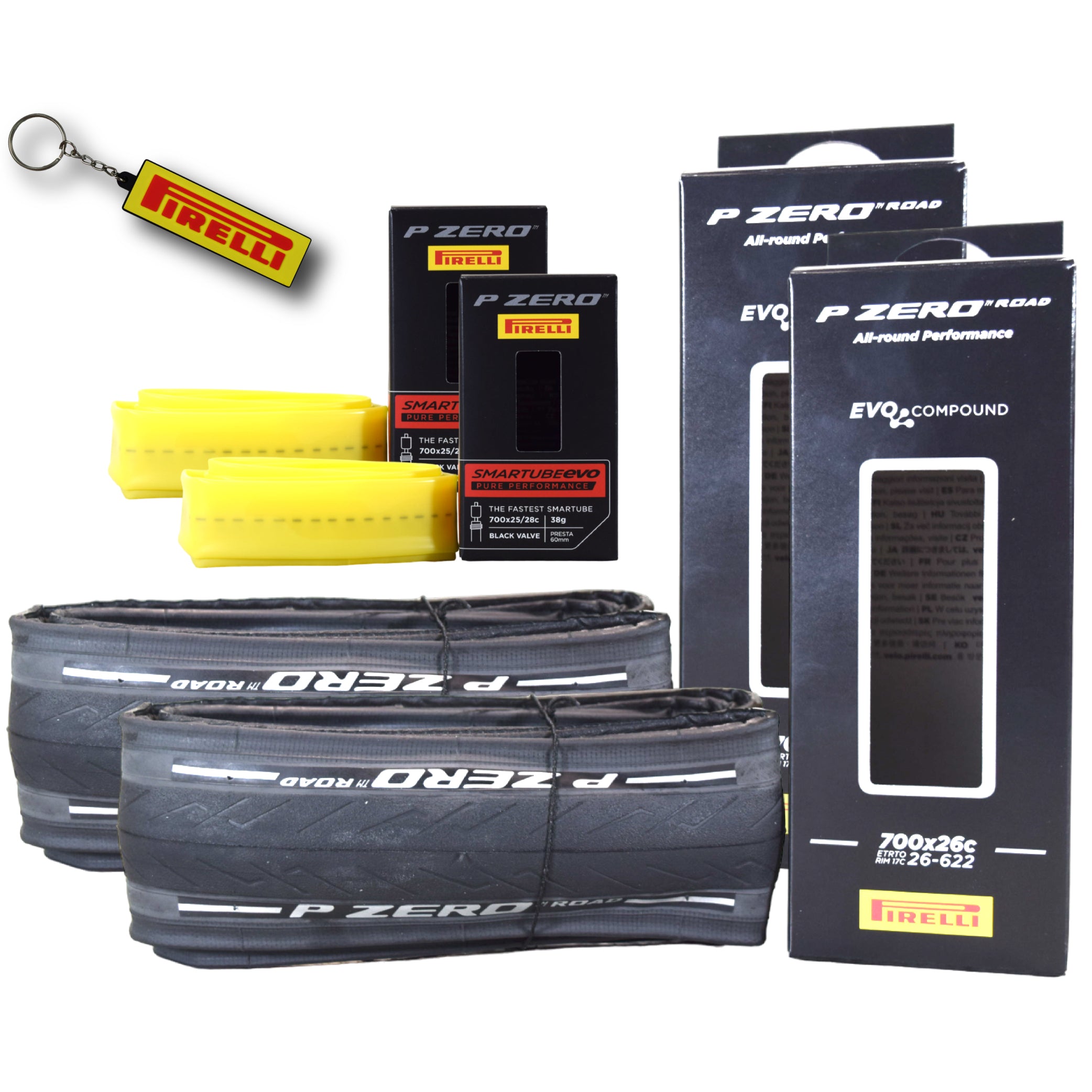 Pirelli P ZERO Road 26-622(700x26c) & SmarTUBE 25/28-622 700C Road Bike Tire & Tube Set- All-Season Performance, High Grip & Durability, Bicycle Tube&Tire Set- w/Keychain (2 Pk)