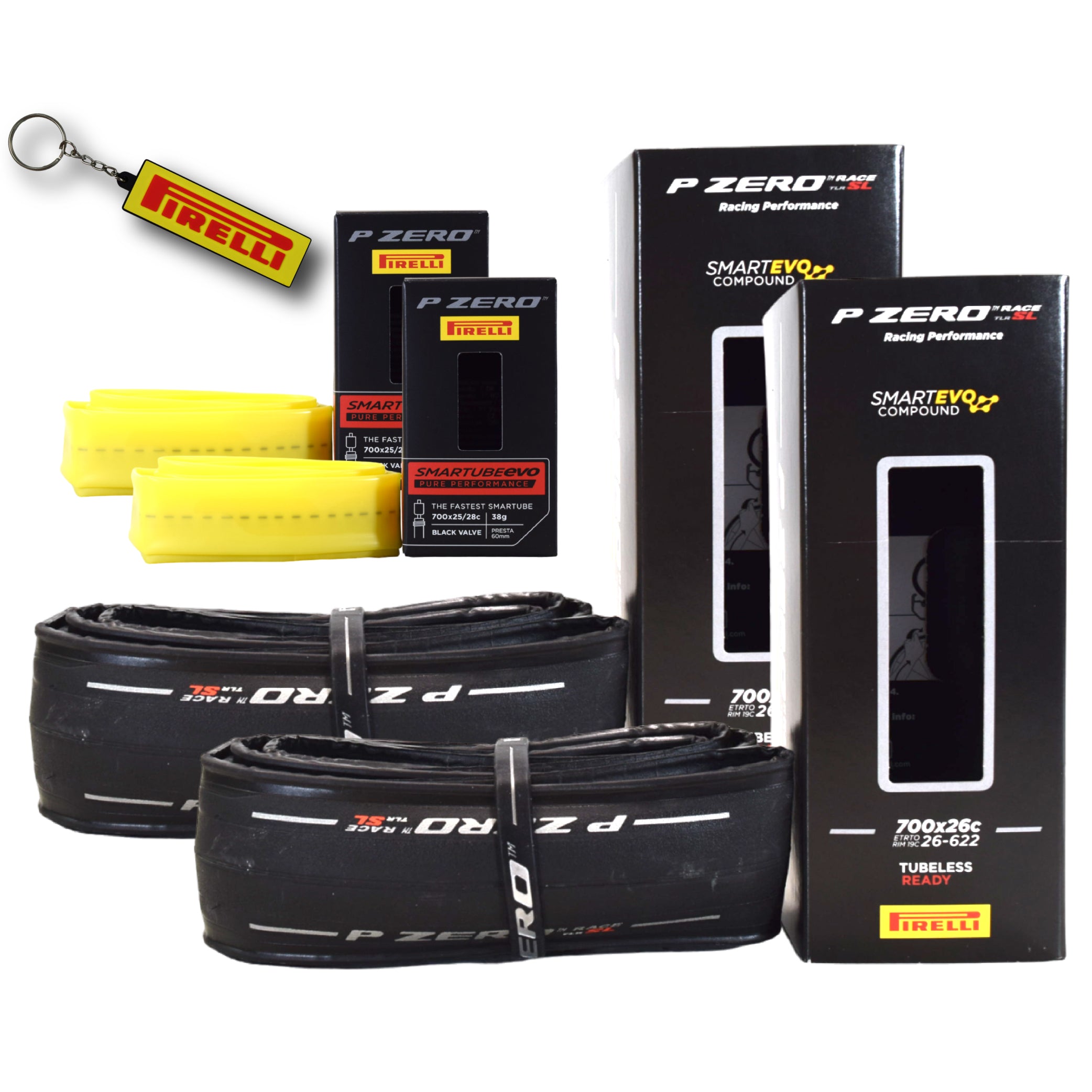 Pirelli P ZERO Race TLR SL 26-622(700x26c) & SmarTUBE EVO 25/28-622 700C Road Bike Tire & Presta Tube Set- Super Lightweight, Bicycle Tire & Tube Set for Road Racing -SmartEVO Compound w/Keychain(2Pk)