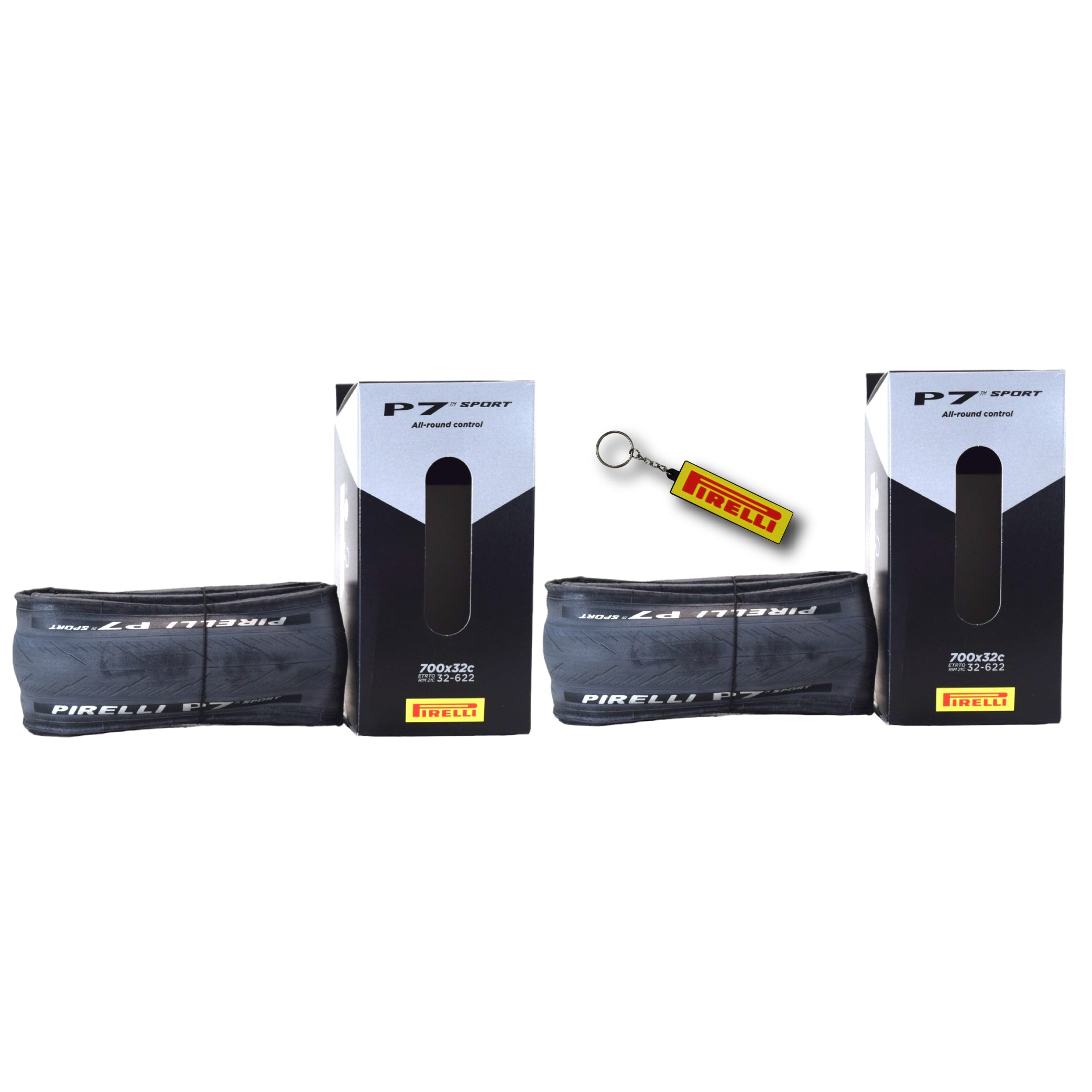 Pirelli P7 Sport 32-622 (700x32c) Road Bike Tire - All-Round Performance - Durable Everyday Tire - 60tpi TechBELT Casing & PRO Compound for Control, Comfort & Handling w/Keychain (2 Pk)
