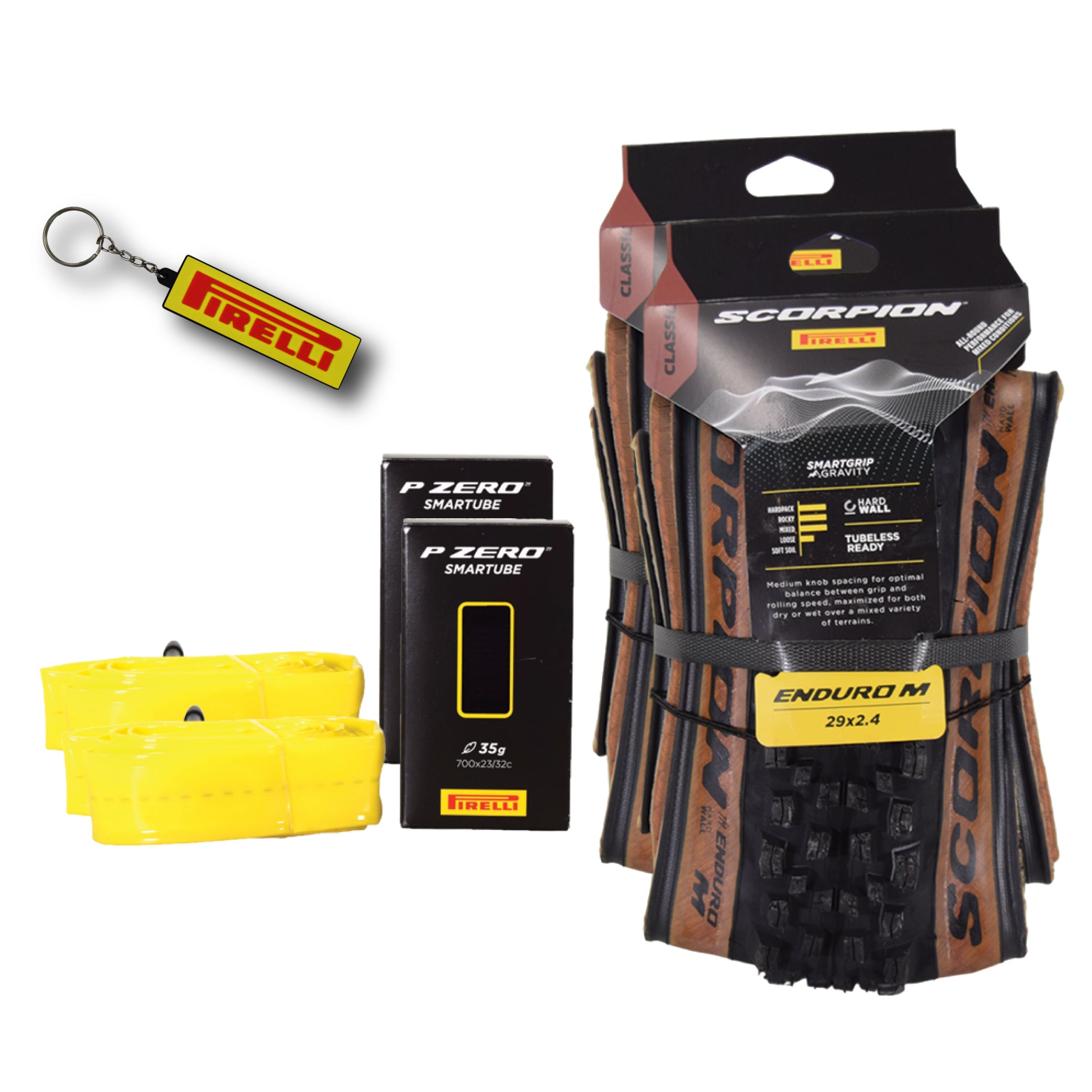 Pirelli Scorpion Enduro M Classic (29x2.4) Mountain Bicycle Tire & SmarTUBE 23/32-622 Tubeless Ready, 60 TPI,  All-Terrain Tire for Enduro Trail & Aggressive XC Riding Mountain Bike w/Keychain (2 Pk)