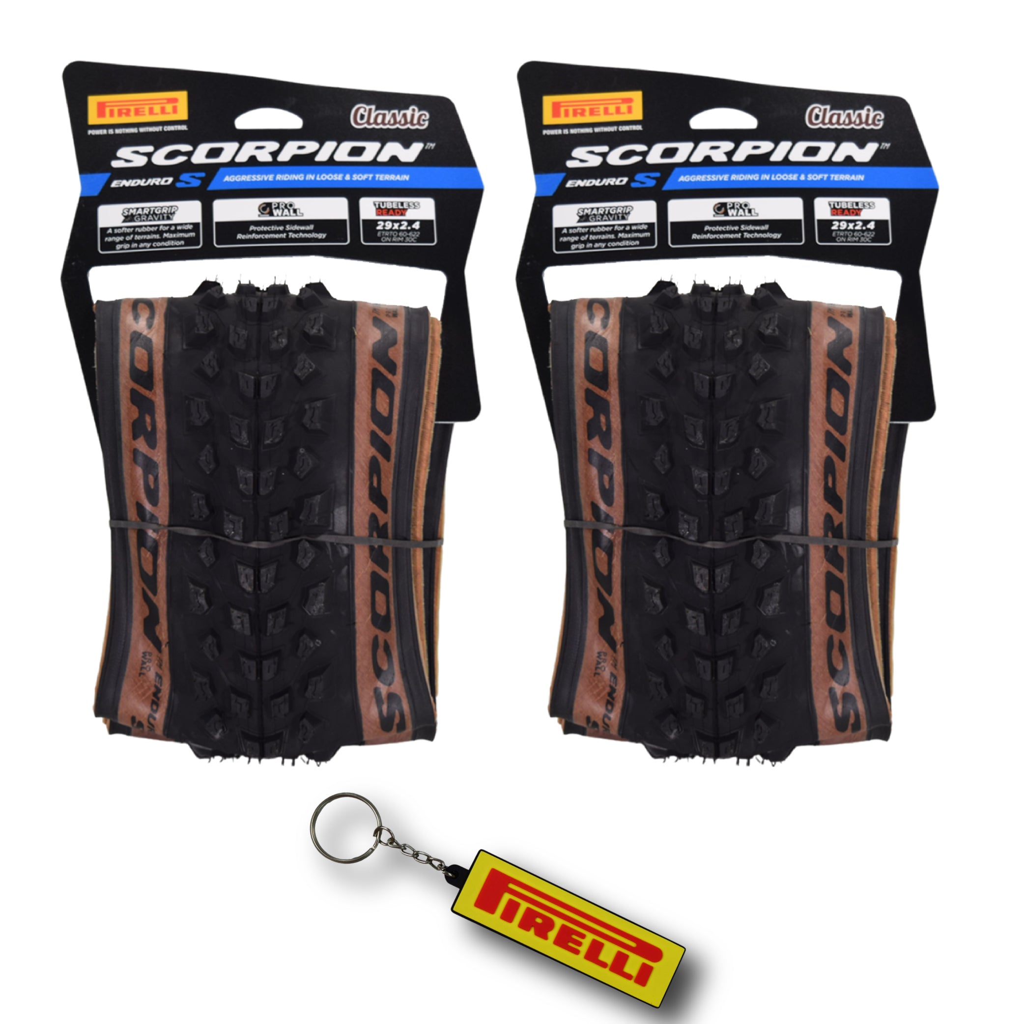 Pirelli Scorpion Enduro S Classic Tan 60-622 (29x 2.4) MTB Bicycle Tire - Designed for Demanding XC Courses, 60TPI and ProWall Casing- Mountain Bike Tire w/Keychain (2 Pk)