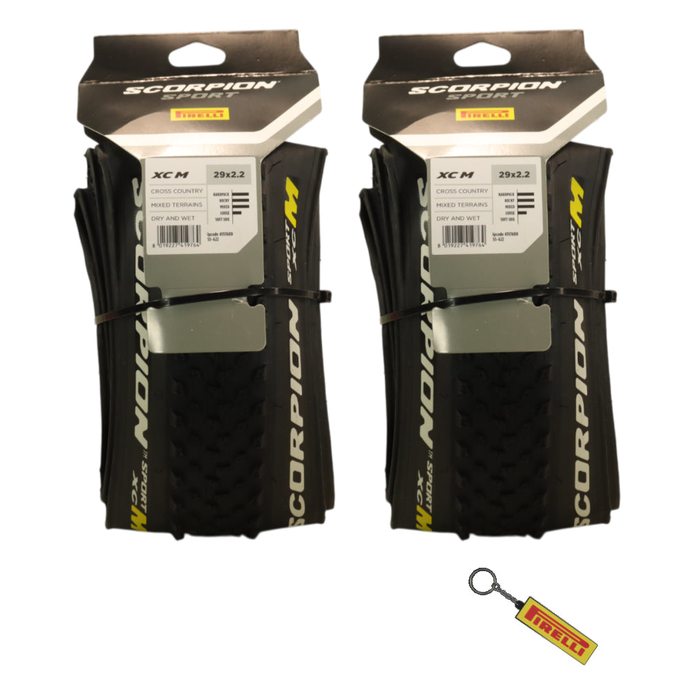 Pirelli Scorpion Sport XC M 29 x 2.2 Black Folding Tire for Mountain Bikes - Mixed Terrain Performance, Lightweight and Durable for varied terrain. Includes Pirelli Scorpion Keychain. (2 Pack)
