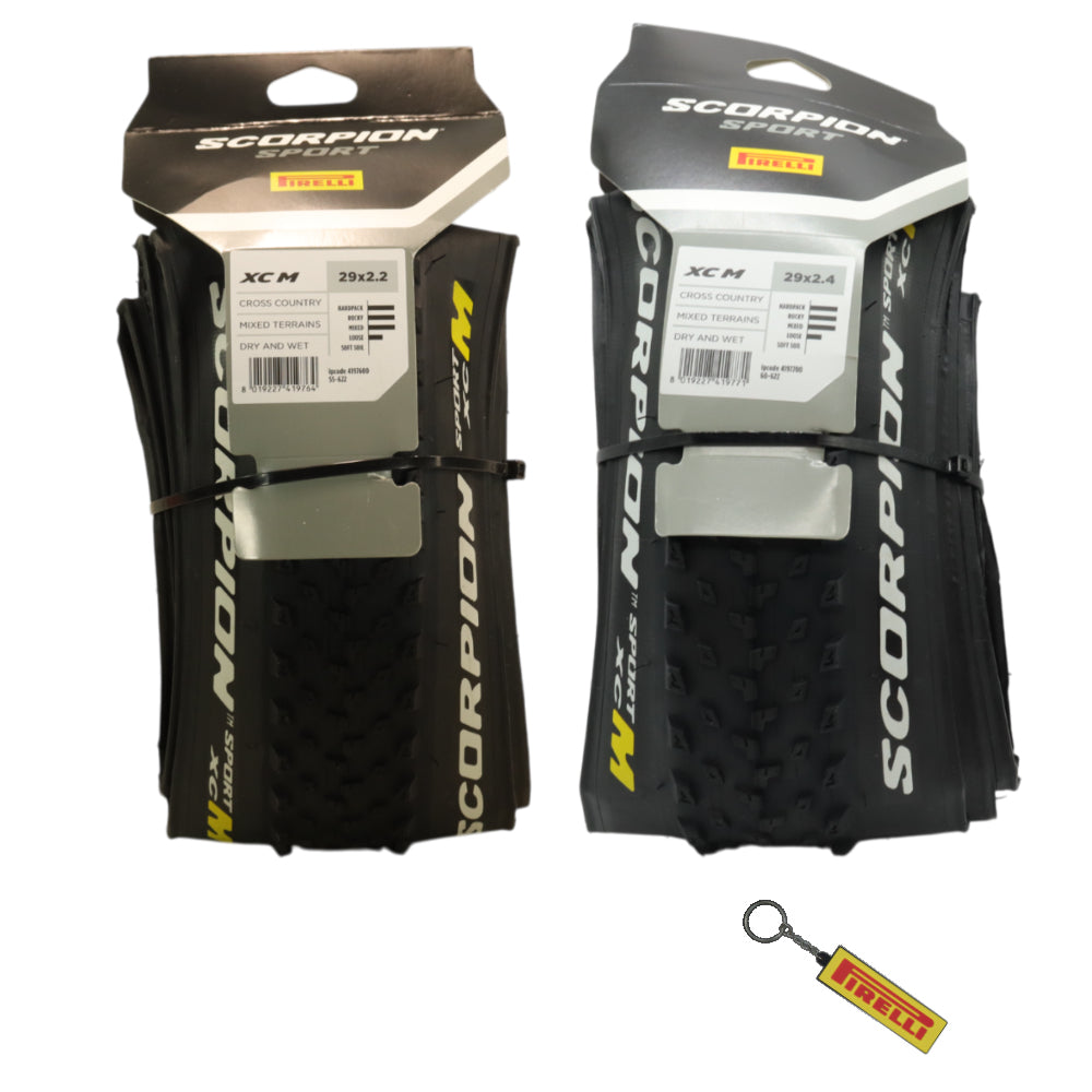 Pirelli Scorpion Sport XC M 29 x 2.2 & XC M 29 x 2.4 Black Folding Tire for Mountain Bikes - Mixed Terrain Performance, Lightweight and Durable for varied terrain with Pirelli Scorpion Keychain.