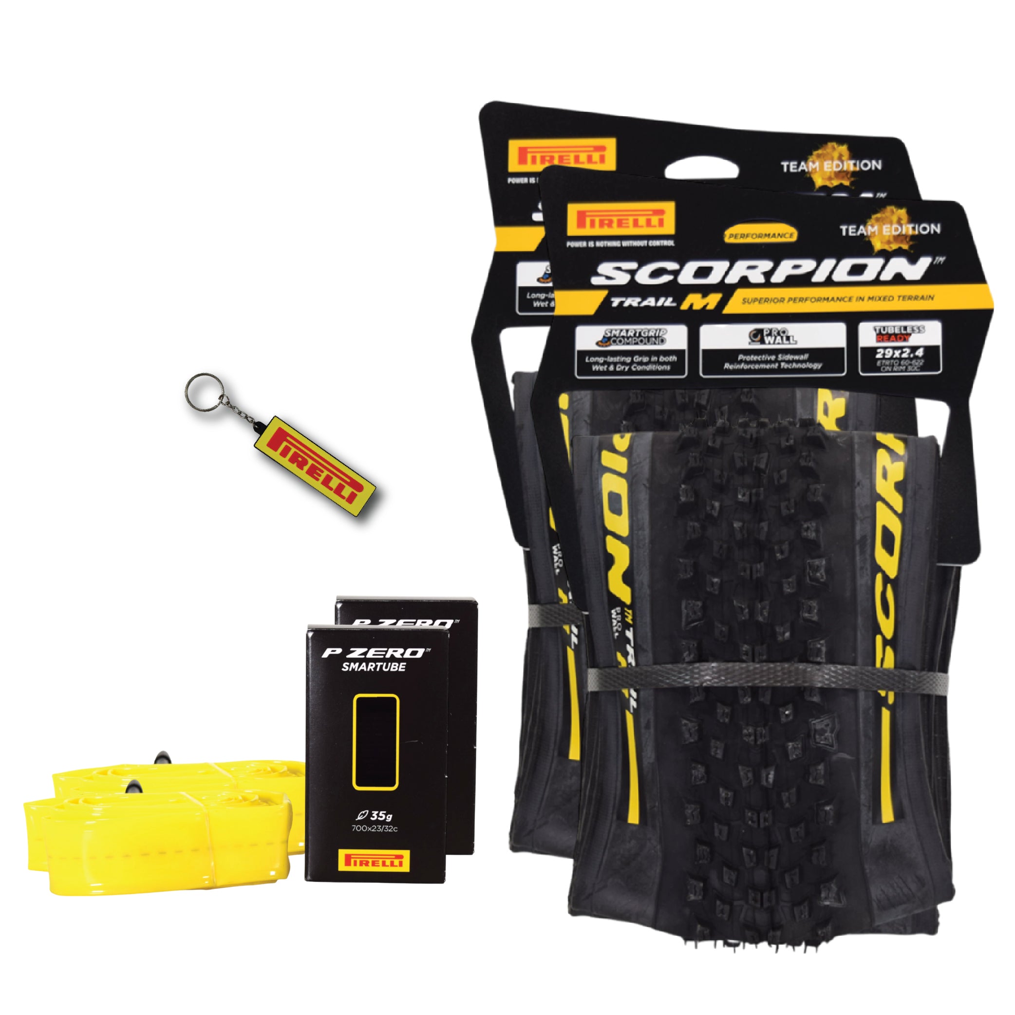Pirelli Scorpion Trail M Yellow Label 60-622(29x 2.4) MTB Bicycle Tire & SmarTUBE 23/32-622 Set- Designed for Trail Riding with Varying Terrain, 60TPI - Trail Bike Tire w/Keychain(2 Pack)