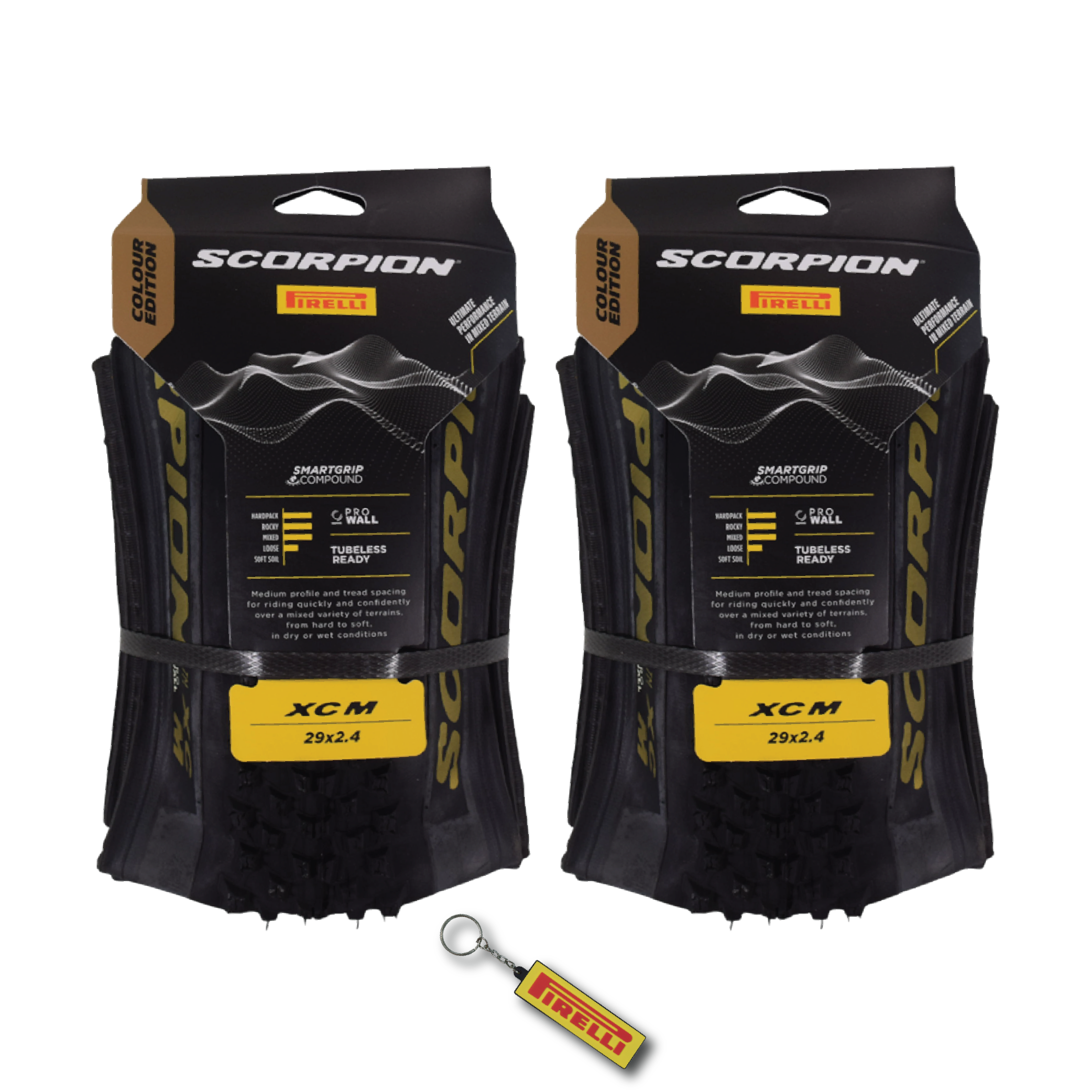 Pirelli Scorpion XC M Gold Label 60-622 (29x 2.4) MTB Bicycle Tire - Designed for Hardpacked Courses and Mixed Terrains, 120TPI and ProWall Casing- Mountain Bike Tire w/Keychain (2 Pk)