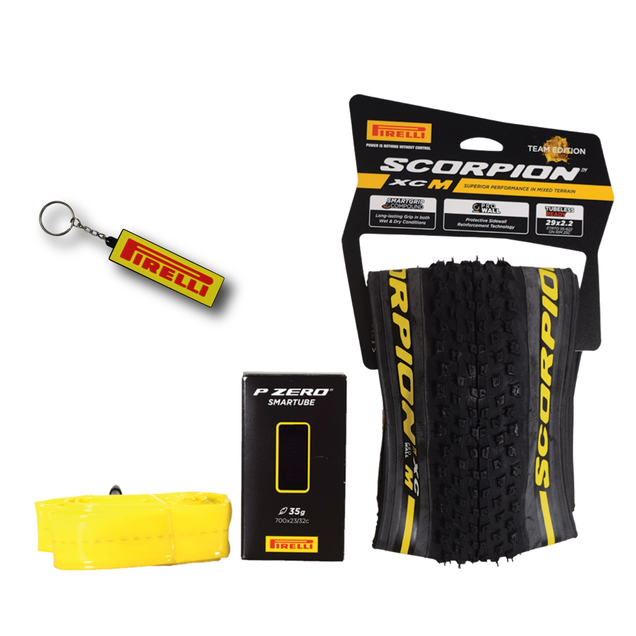Pirelli Scorpion XC M Yellow Label 55-622 (29x 2.2) MTB Bicycle Tire & SmarTUBE 23/32-622 Set- Designed for Hardpacked Courses, 60TPI and ProWall Casing- Mountain Bike Tire w/Keychain