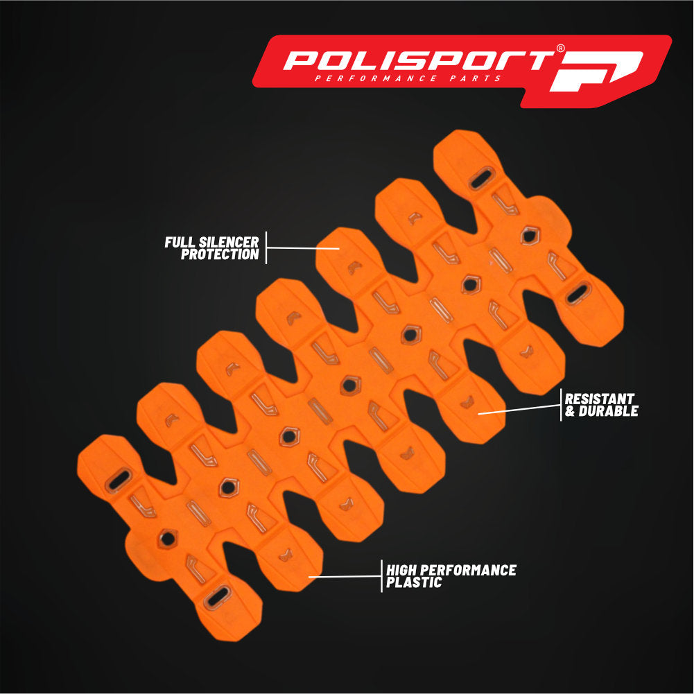 Polisport Armadillo Silencer Guard - Orange, 30cm Length, Dual-Compound Silicone & Stainless Steel, Universal Fit for 2-Stroke Mufflers, Heat-Resistant, Impact-Proof, Easy Install