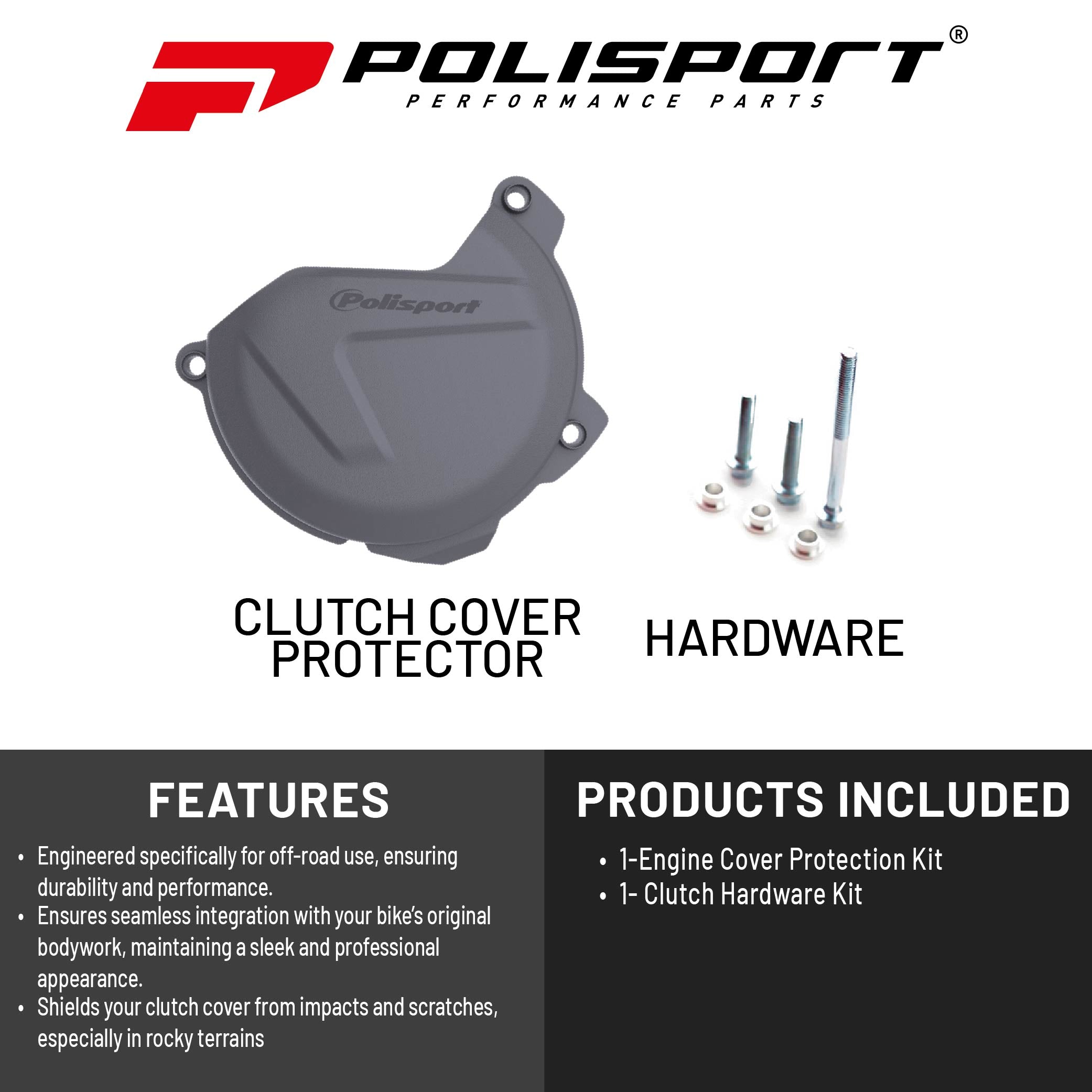 Polisport Clutch Cover Protector Kit (Grey) - Compatible with KTM EXC-F/XCF-W 250/350(2013-2016) SX-F/XC-F 250/350 (2013-2015) & Husquvarna FE/FC 250/350(2014-2015)
