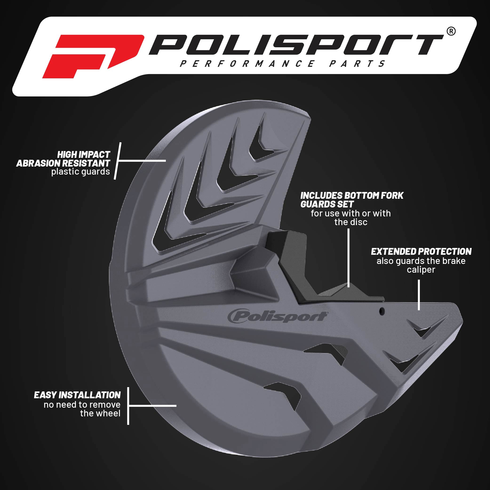 Polisport Disc & Bottom Fork Protector for Honda CRF250R/CRF450R 2015-2021 - Nardo Gray/Black - High Impact Plastic, Brake Disc & Caliper Guard - Easy Install, OEM Fitment