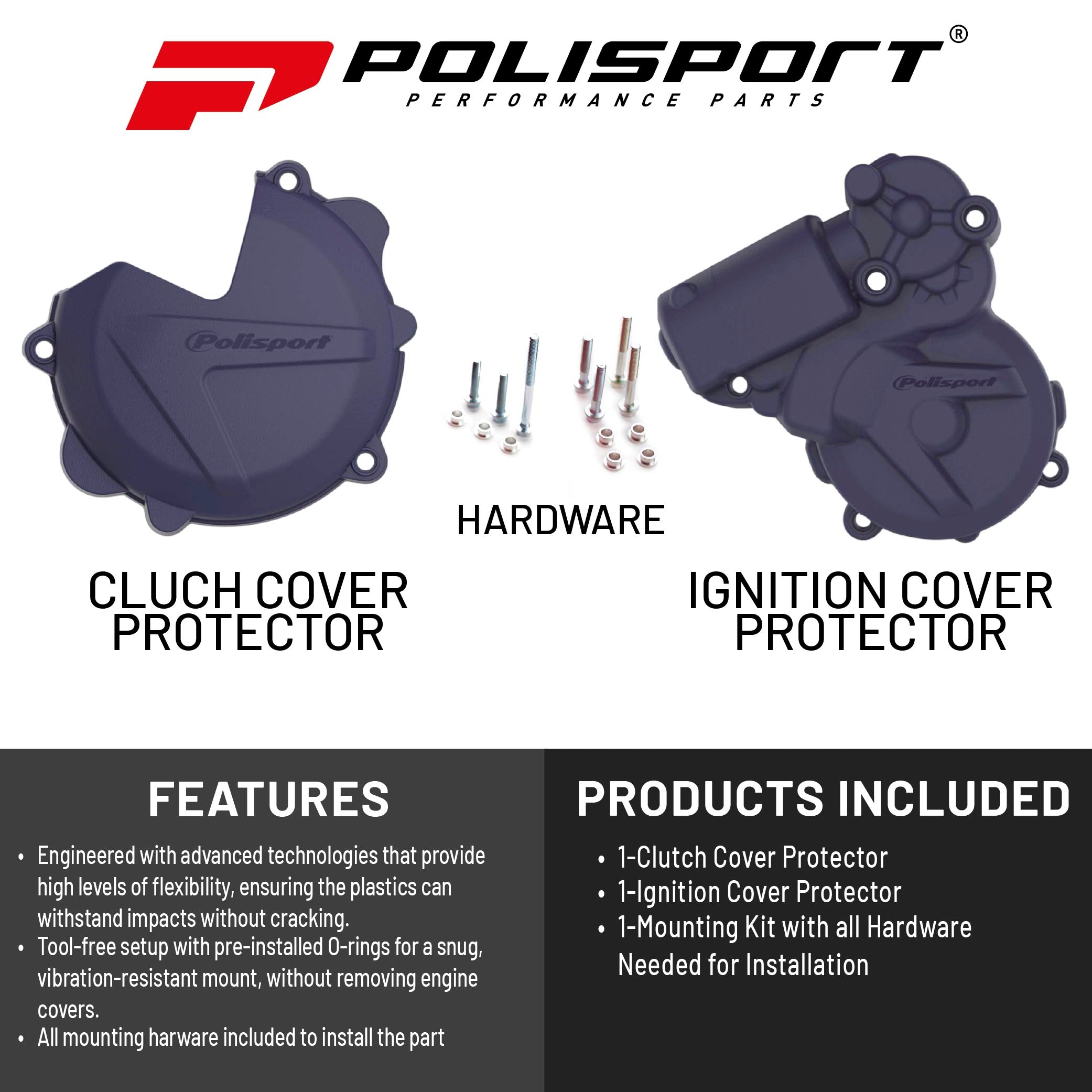 Polisport Clutch and Ignition Cover Protector Kit (Blue) - Compatible with Husquvarna TE250/300(17-20)