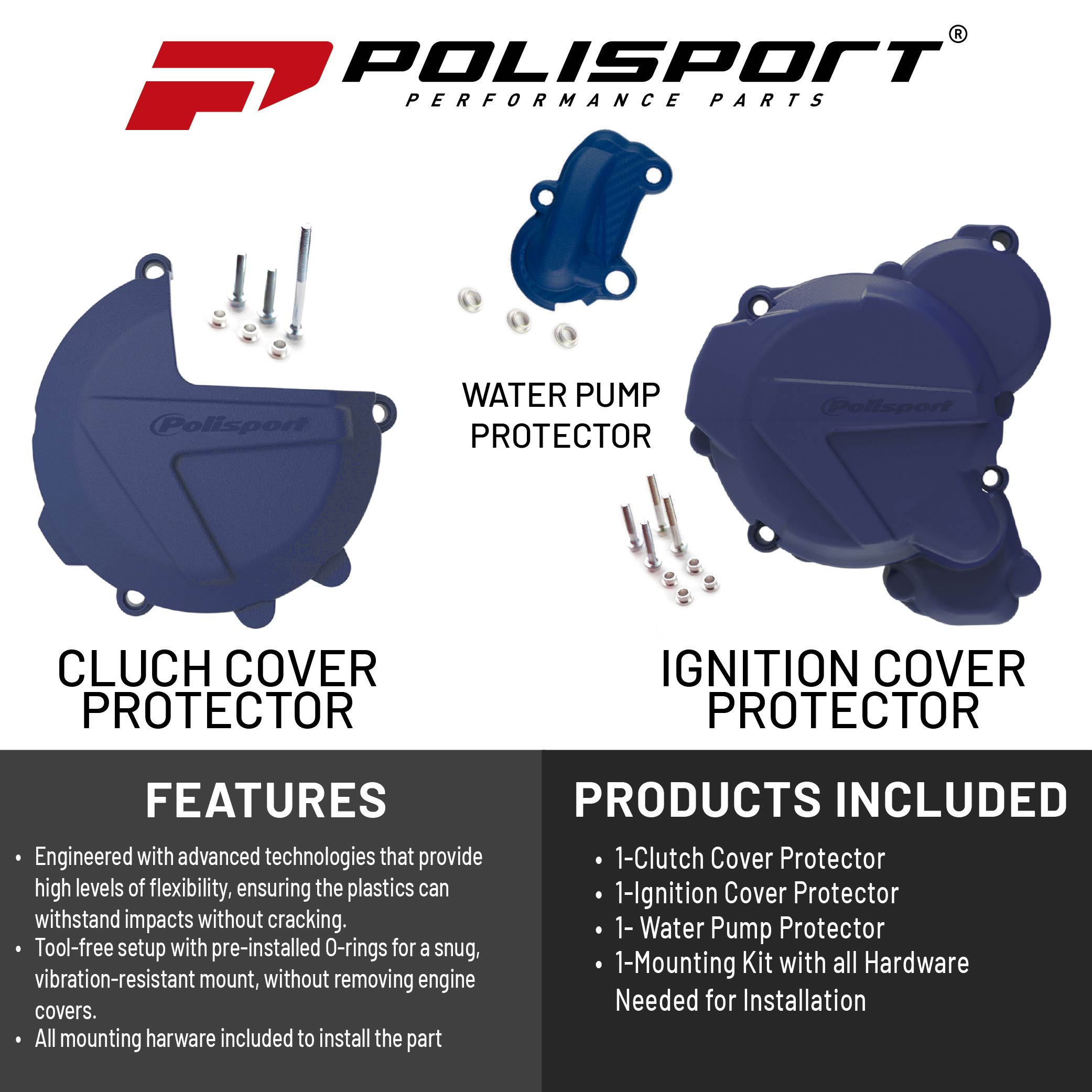 Polisport Clutch and Ignition Cover Protector Kit (Blue) - Compatible with Husquvarna TE250/300(13-16)