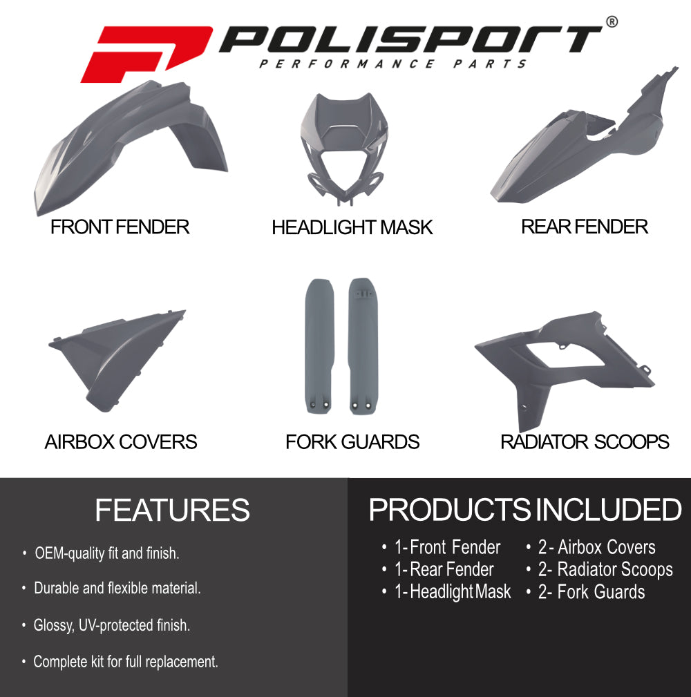Polisport Motocross (MX) Restyling Kit for Beta RR 2T/4T (2018-19) Dirt Bike – OEM Quality, Durable, Flexible & Perfect Fit – Nardo Grey