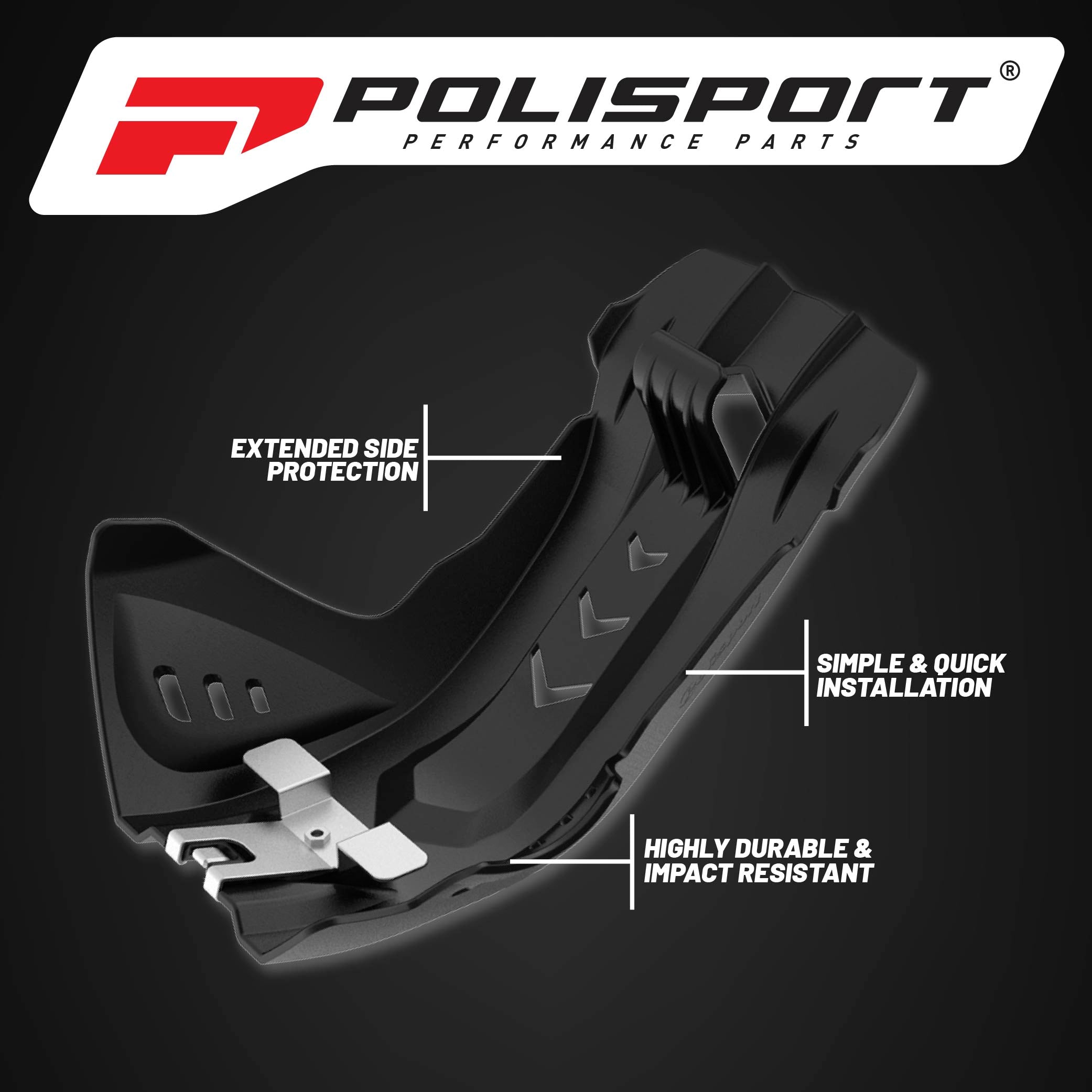 Polisport Motocross Motorcycles (MX) Fortress Skid Plate for Husqvarna FE/FC 250/350/450/501 (2016-23) & KTM EXC-F/SX-F 250/350/450/500 (2016-23) Dirt Bikes - OEM Quality, Flexible & Perfect Fit - Blk