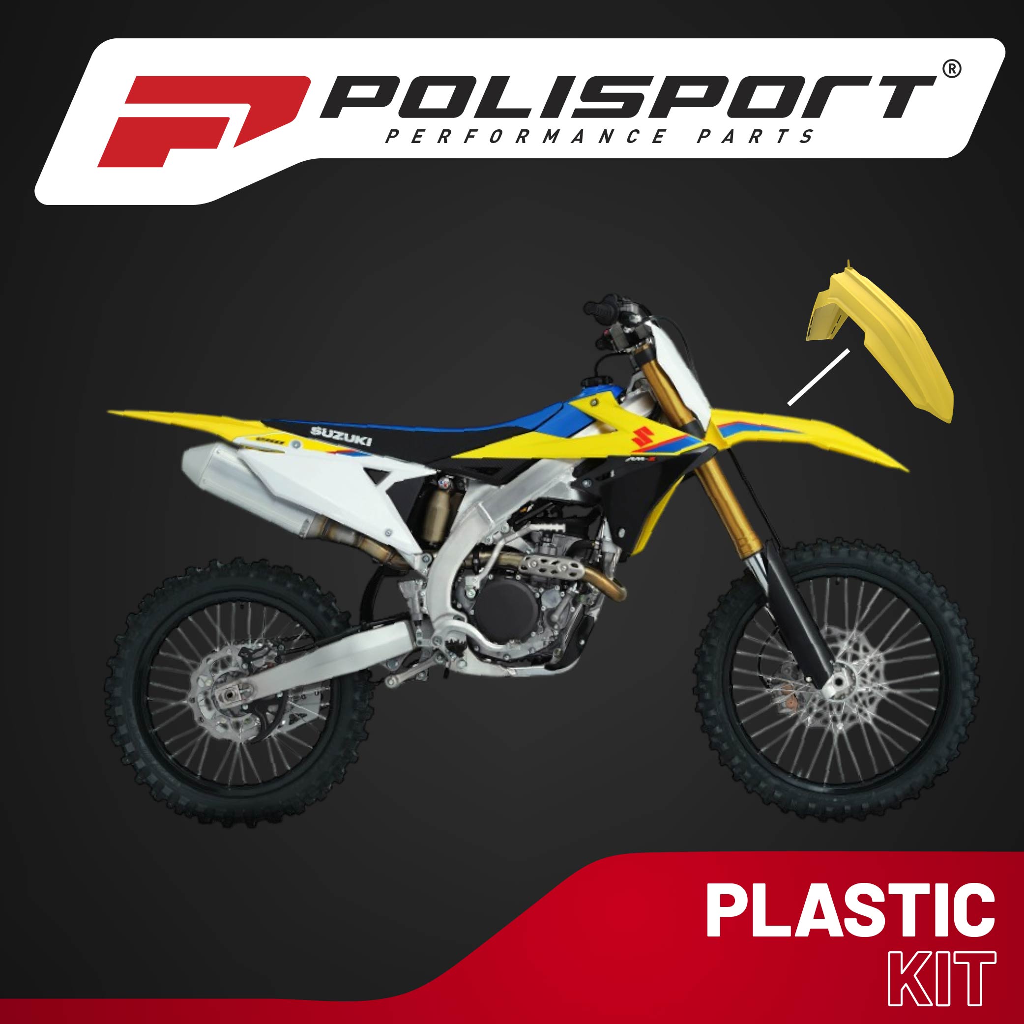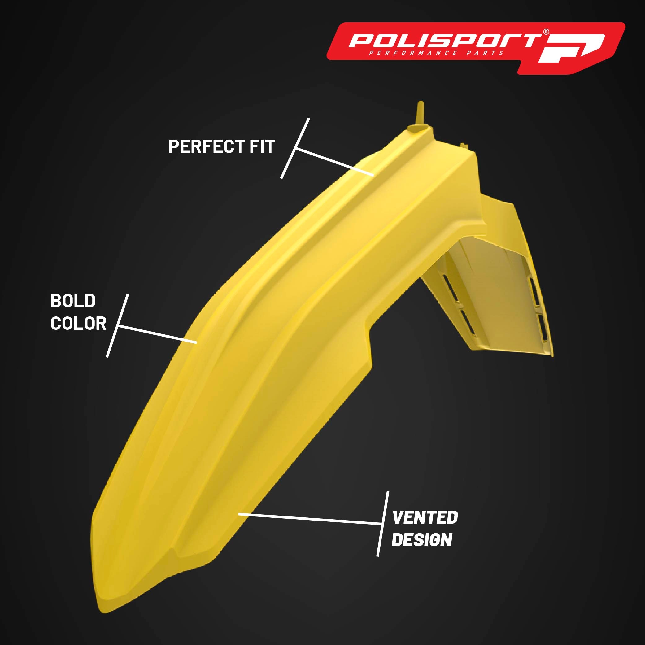 Polisport Motocross (MX) Front Fender for Suzuki RMZ 250 & RMZ 450 (2018-2025) Dirt Bike - OEM Quality, Durable, Flexible & Perfect Fit - Yellow