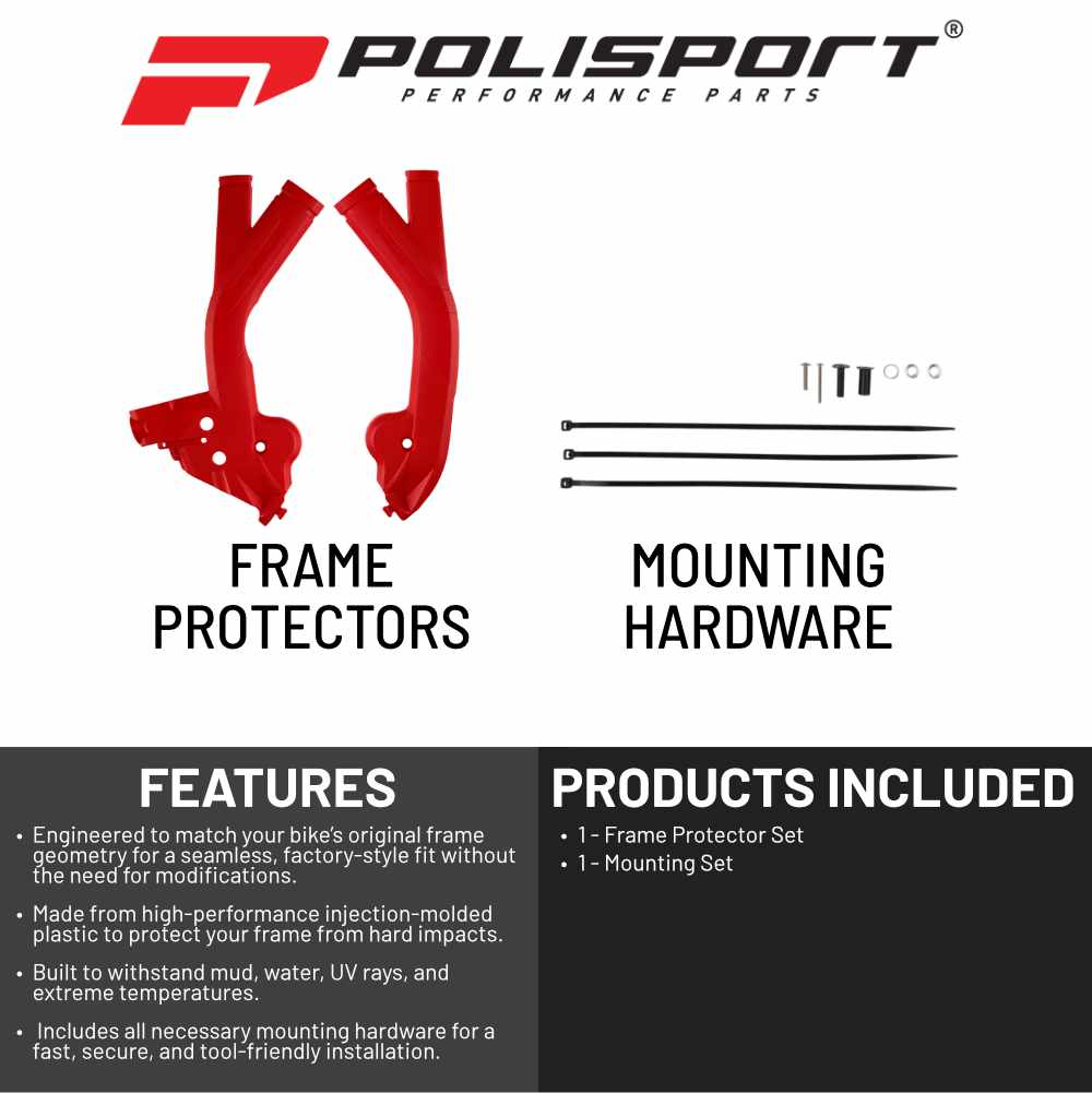 Polisport Motocross (MX) Motorcycle Frame Protector for Beta RR/X-Pro 2T/4T (2024-2026) Dirt Bikes- OEM Quality for Superior Fit & Durable Protection, Easy Installation - Red