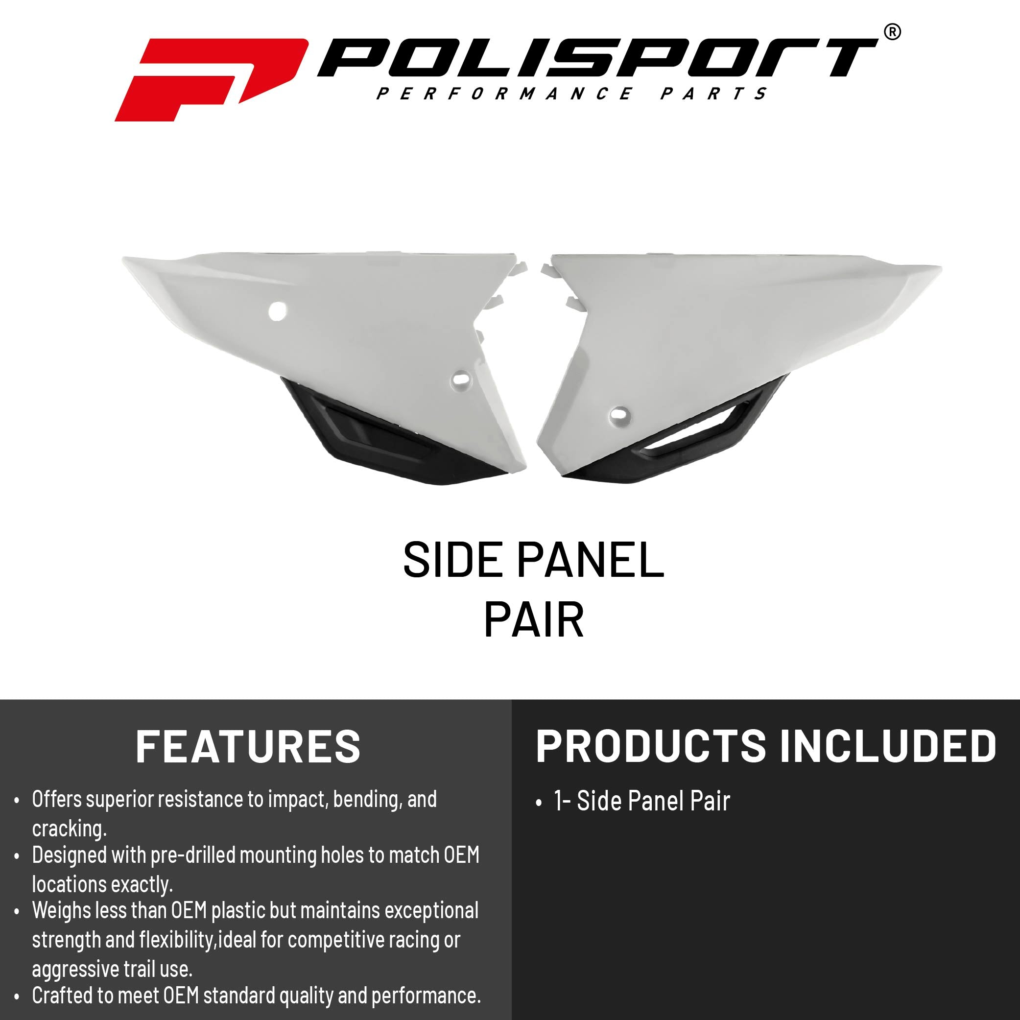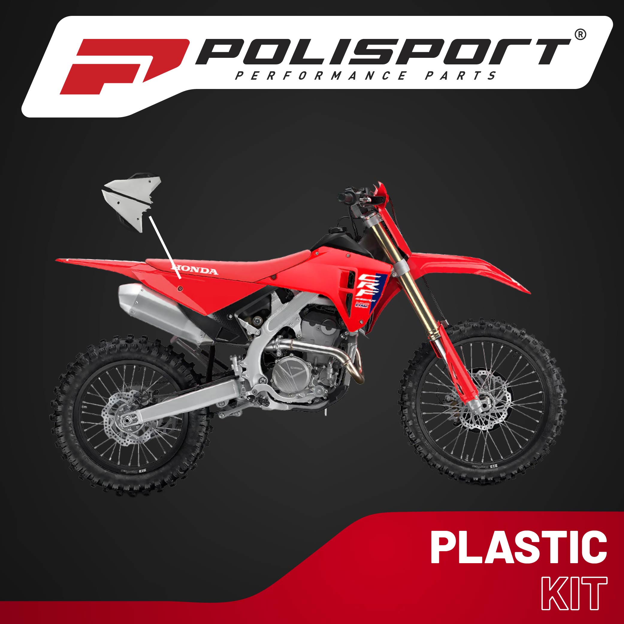 Polisport Motocross (MX) Replica Plastics Side Panels for Honda CRF250R/CRF250RX (2022-24), CRF 450R/RX (2021-24) Dirt Bike - OEM Quality, Durable, Flexible & Perfect Fit - White/Black