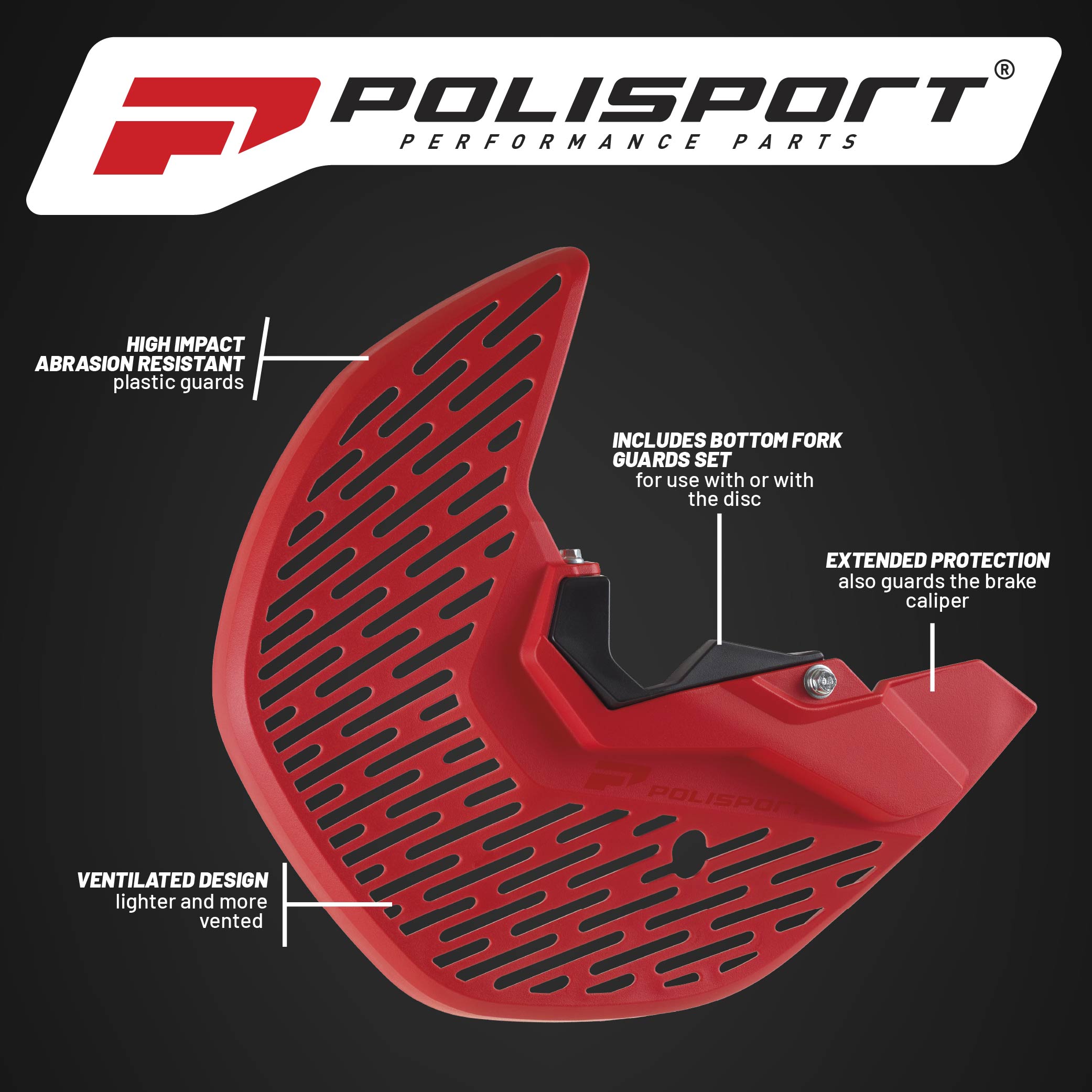 Polisport Motocross Motorcycles (MX) Disc/Bottom Fork Protector for Honda CRF250R/450R (2015-24) / CRF450RX (2017-24) Dirt Bike - Protects Brake Disc and Fork from Rocks and Debris for MX/Enduro - Red