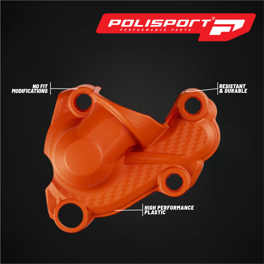 Polisport Motocross Motorcycles (MX) Water Pump cover for KTM EXC-F 250/350 (2017-2023) & SX-F 250/350 (2016-2022) Dirt Bikes - High-Impact Plastic Guard - Orange