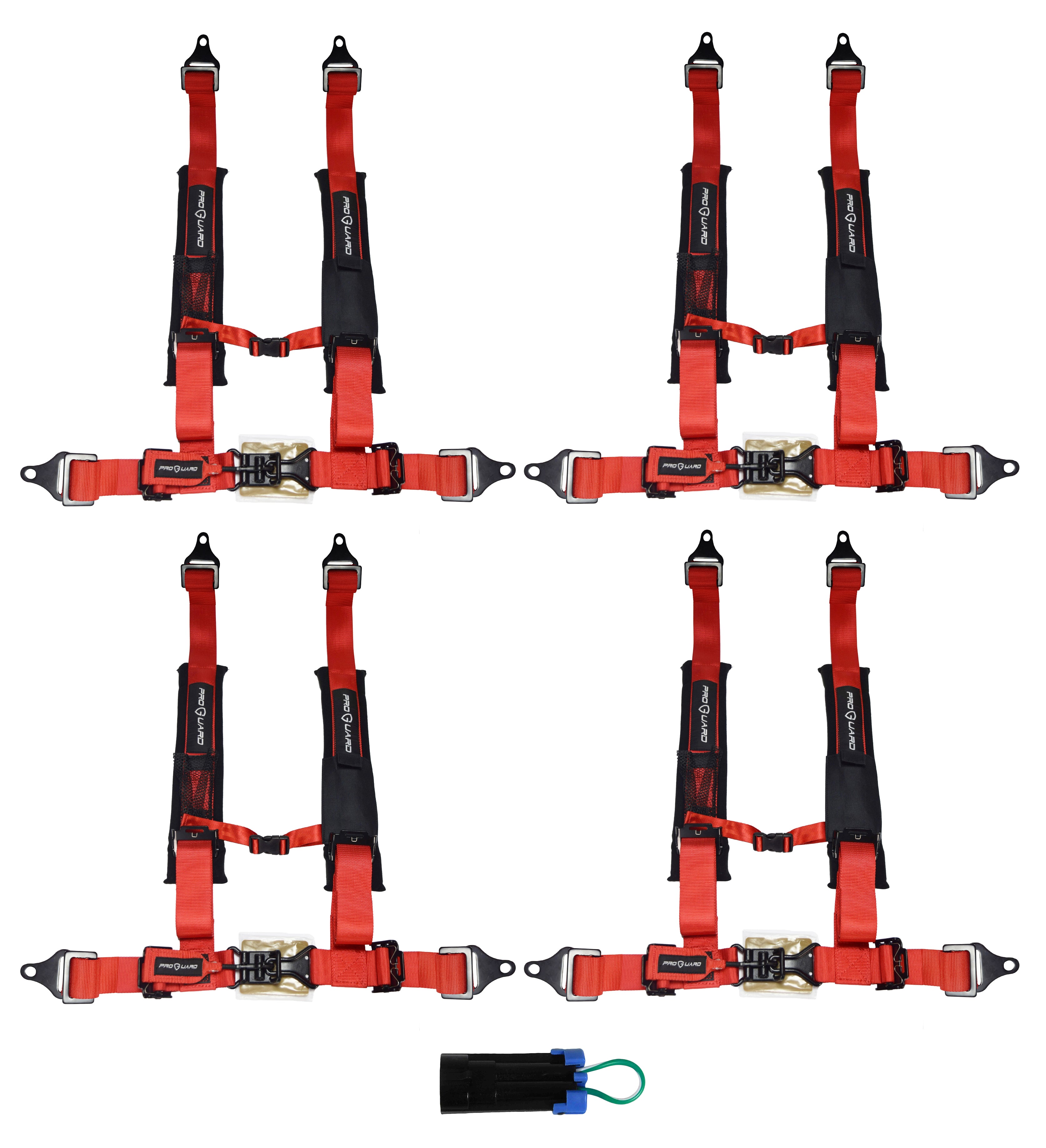 ProGuard Offroad Harnesses (4-Pack Red) w/ 2" Straps & 4 Points of Contact & Seat Belt Bypass Clip for All UTVs incl Polaris, Kawasaki, etc