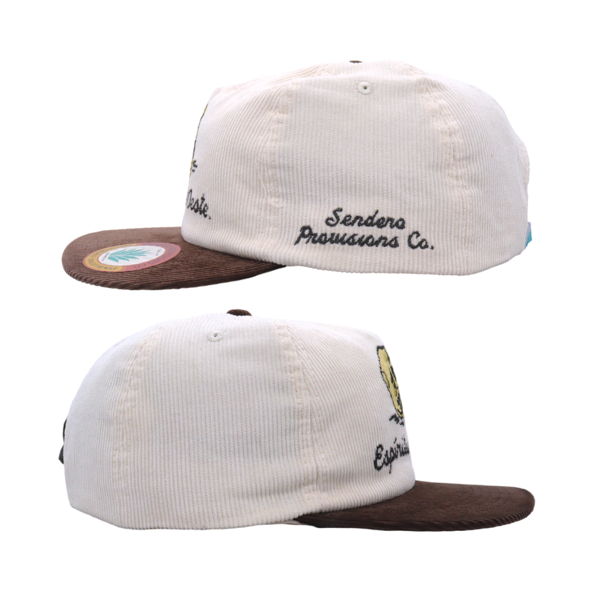 Sendero Provisions Co. Del Oeste Adjustable Snapback Hat - Cream/Brown, Embroidered Design, Structured 5-Panel Cotton Twill Cap for Outdoor Adventures