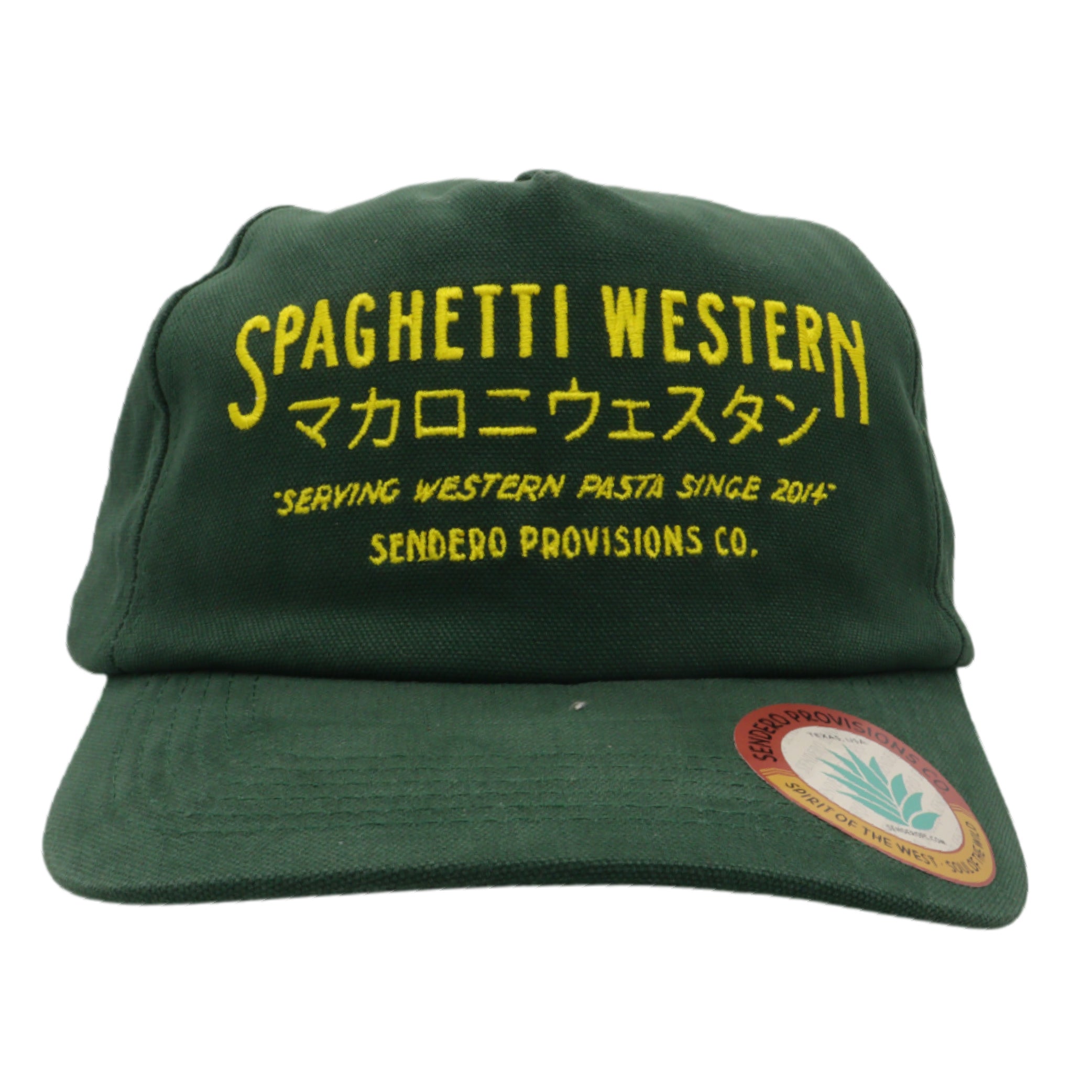 Sendero Provisions Co. Spaghetti Western Hat - Green - Unstructured 5-Panel Adjustable Leather Strapback Cap with Embroidered Design, One Size