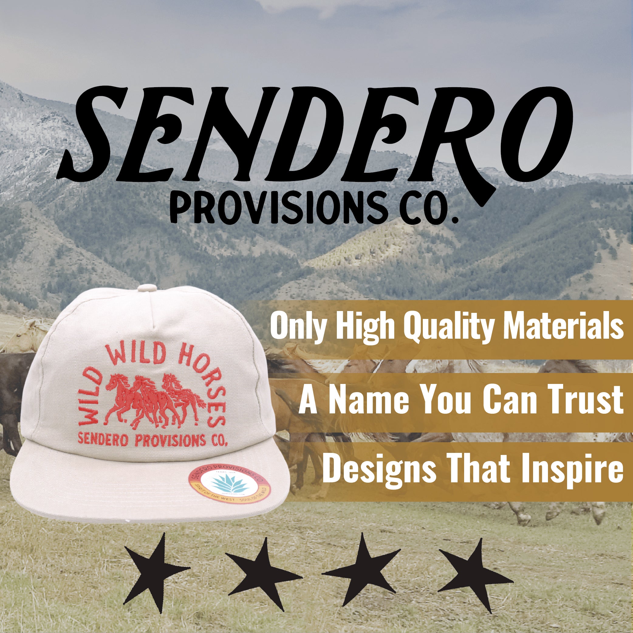 Sendero Provisions Co. Wild Wild Horses Adjustable Snapback Hat with Embroidered Design (Tan/Orange) - One Size