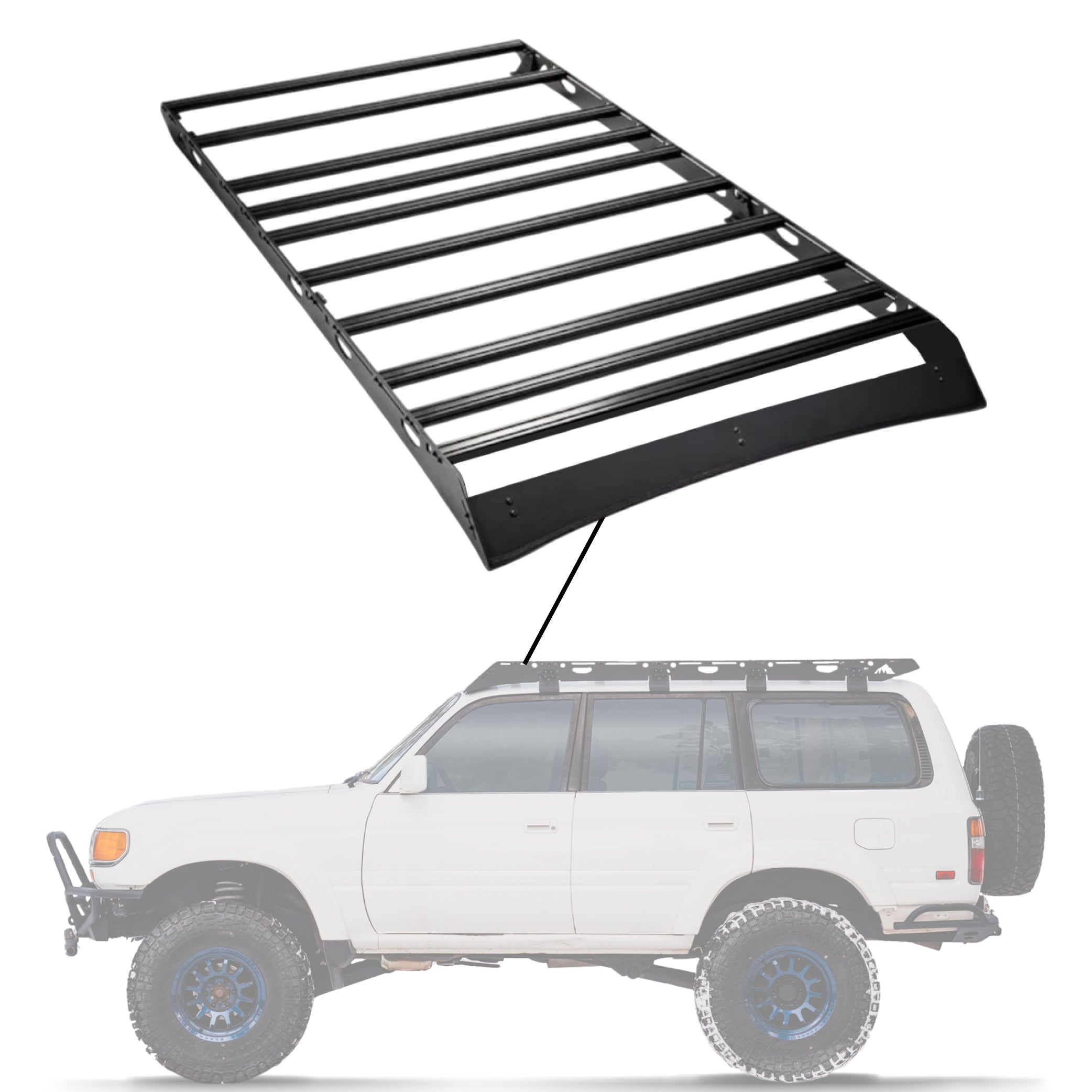 Sherpa - The La Sal Half Height/Single Row Light Aluminum Roof Rack with Crossbars Made for 1990-1997 Toyota 80 Series Land Cruiser - Drill Free Rack for Tents; Kayaks; Bikes; Skis Made in the USA