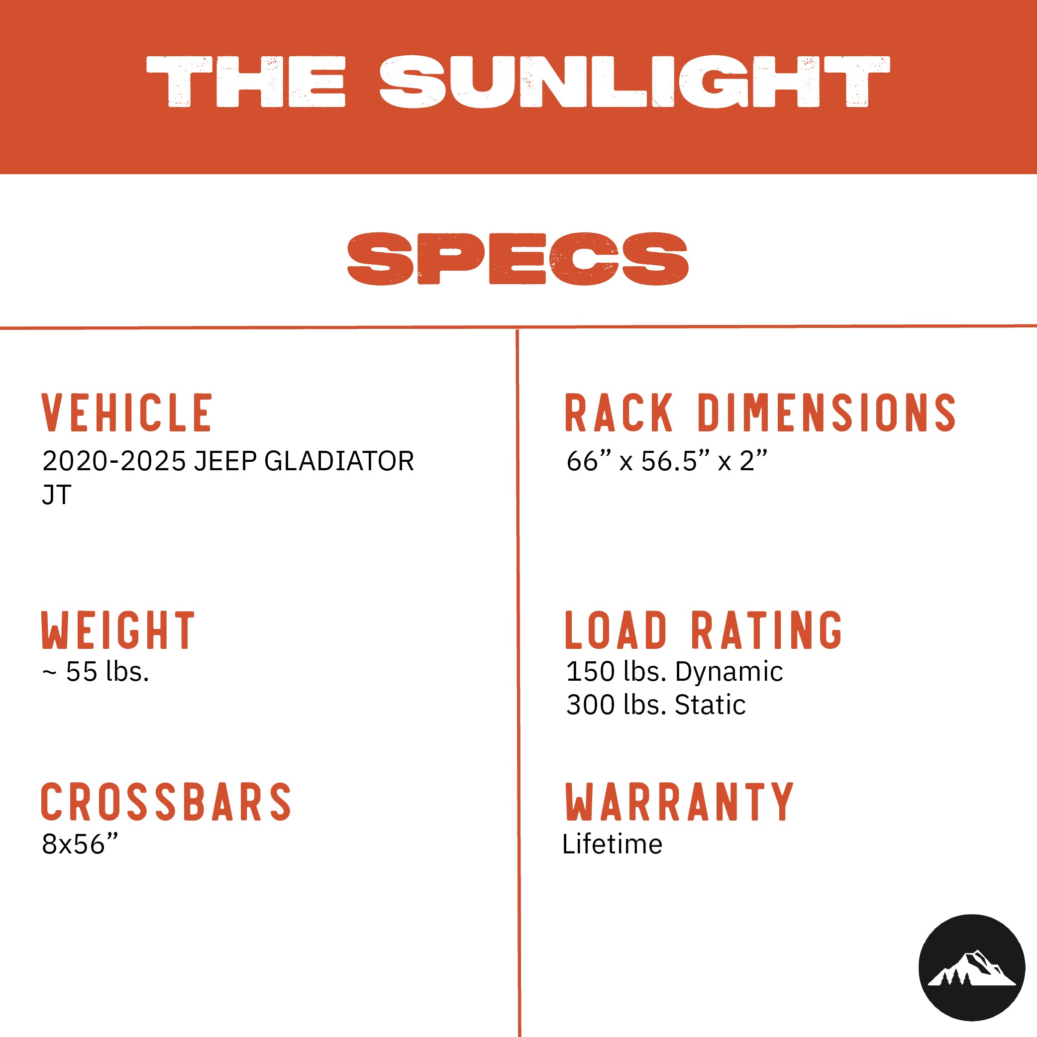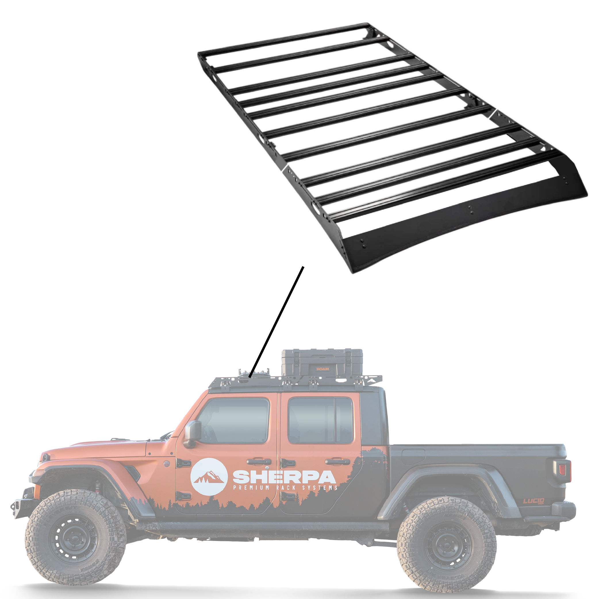 Sherpa - The Sunlight Half Height/Single Row Light Aluminum Roof Rack with Crossbars Made for 2020-2025 Jeep Gladiator JT - Drill Free Rack for Tents; Kayaks; Bikes; Skis Made in the USA