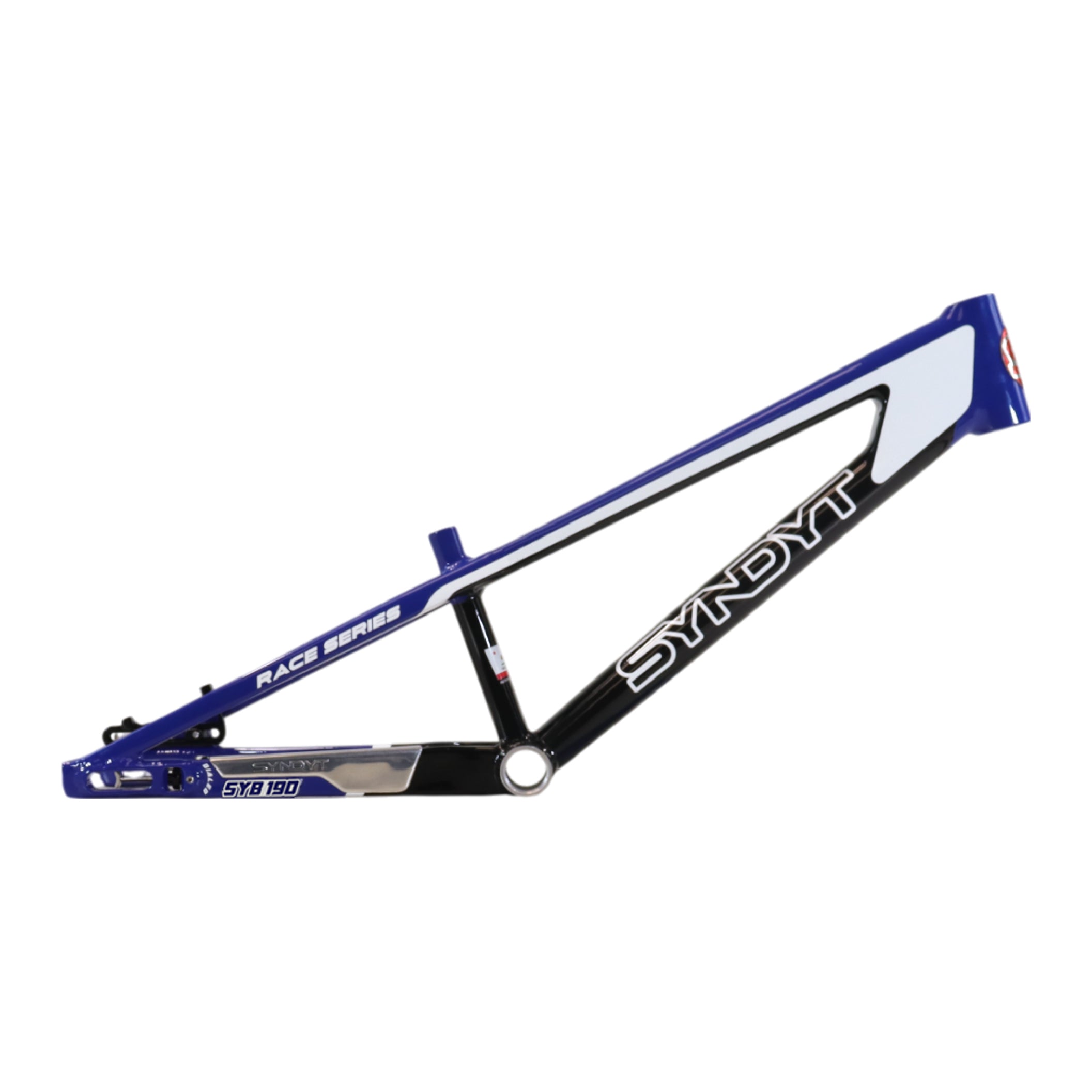 Syndyt 190 Junior XL BMX Racing Bike Frame – 19” Top Tube, 6061-T6 Aluminum (2.86 lbs), Tapered 38/42 Head Tube,Standard Euro BB, 10/15 mm Hubs, 140mm Disc Brake,  Chain Tensioners  Blue Bicycle Frame