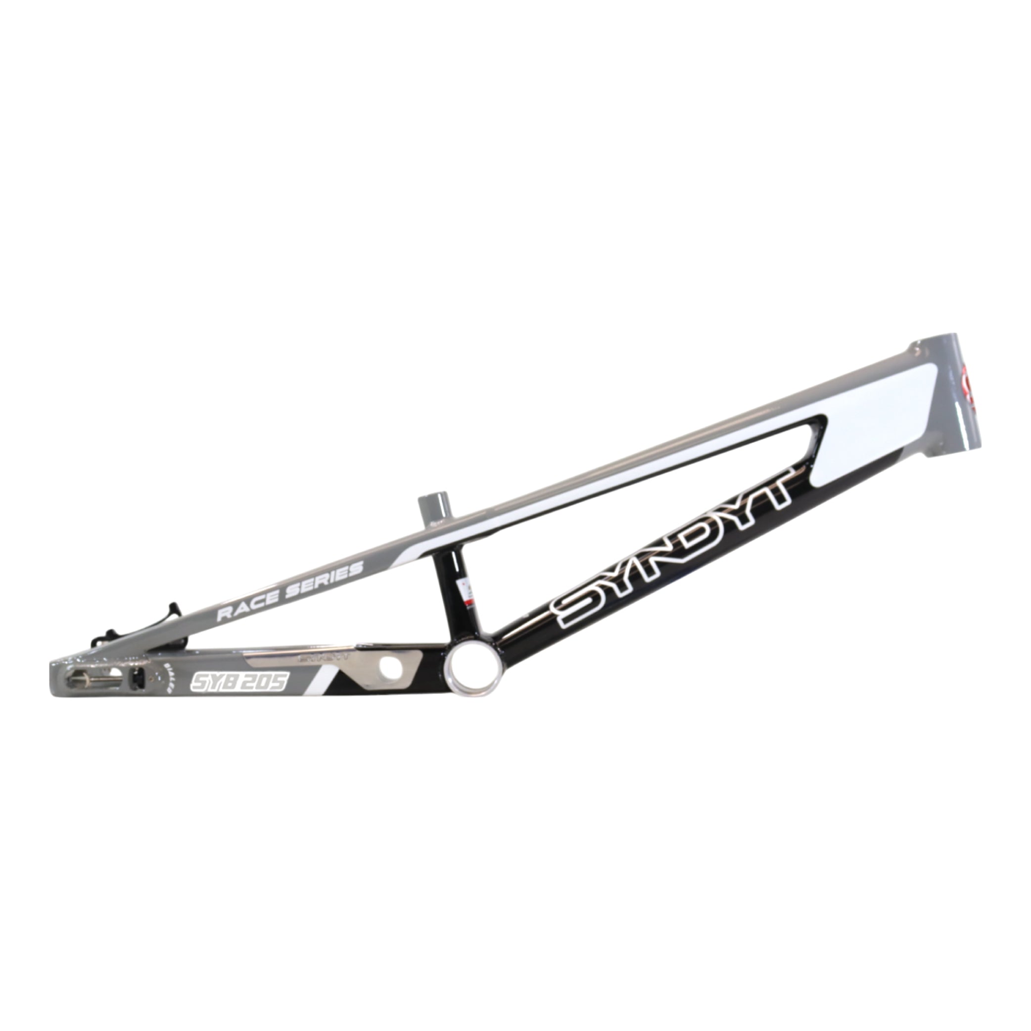 Syndyt 205 Pro BMX Racing Bike Frame – 20.5” Top Tube, 6061-T6 Aluminum (3.99 lbs), Tapered 42/52 Head Tube, B52 Tech BB, 10/15/20mm Hubs, 140mm Disc Brake,  Chain Tensioners – Gray Bicycle Frame