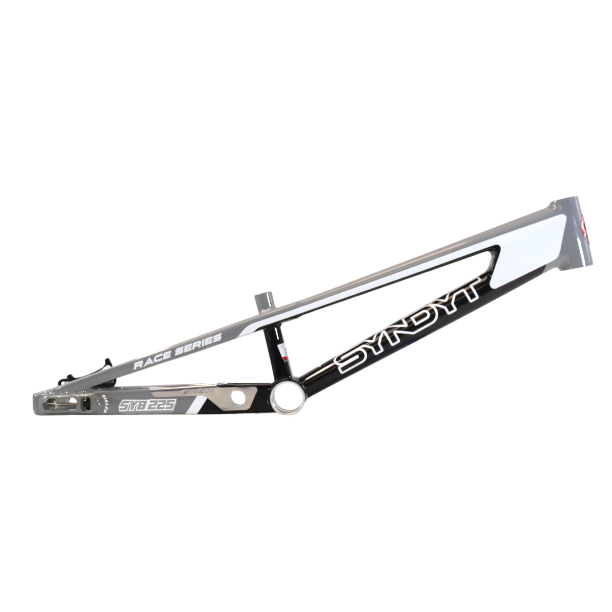 Syndyt 225 Pro 4XL BMX Racing Bike Frame – 22.5” Top Tube, 6061-T6 Aluminum (4.19 lbs), Tapered 42/52 Head Tube, B52 Tech BB, 10/15/20mm Hubs, 140mm Disc Brake, Integrated Chain Tensioners – Gray