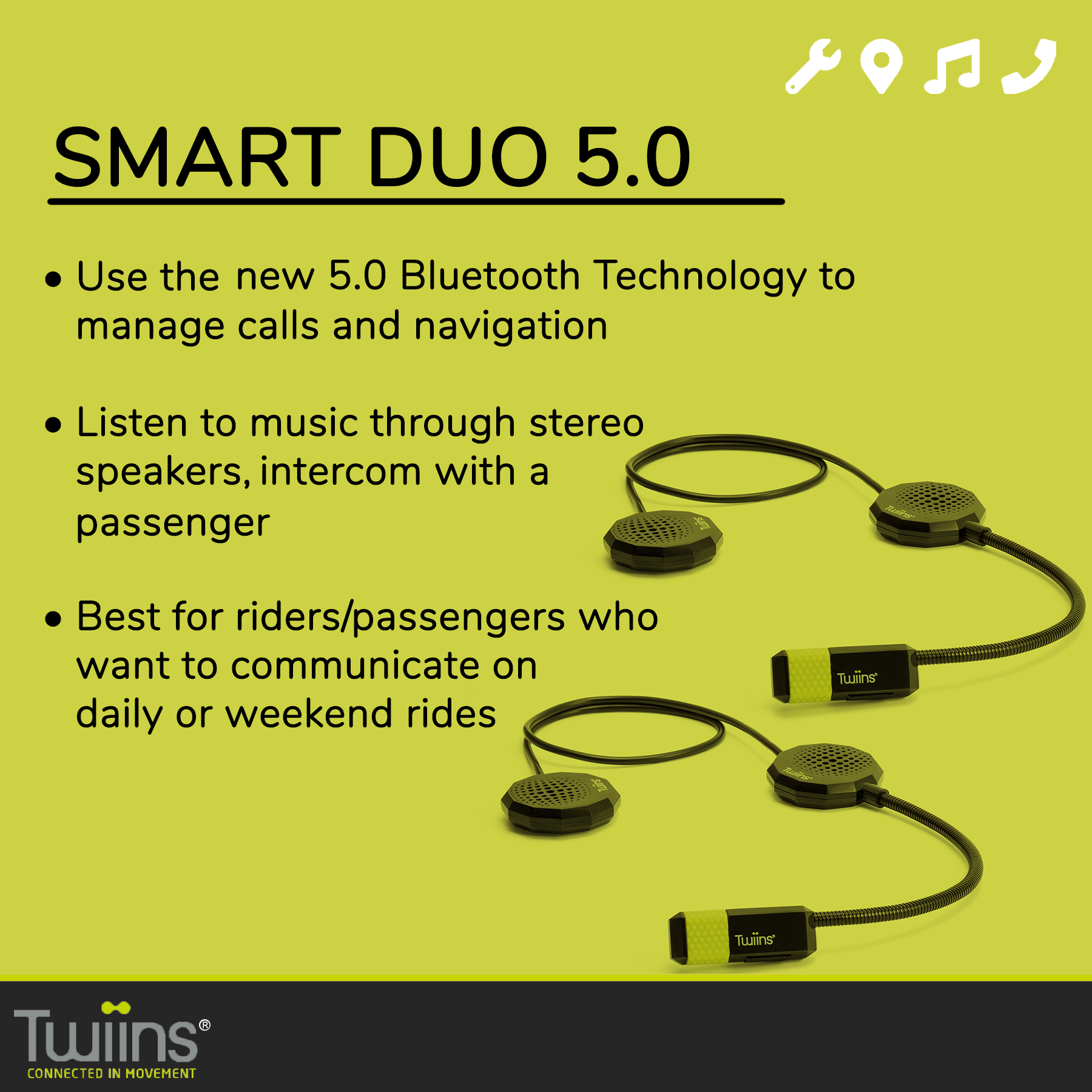 Twiins HF Smart Duo Bluetooth Motorcycle Helmet Communication Headset