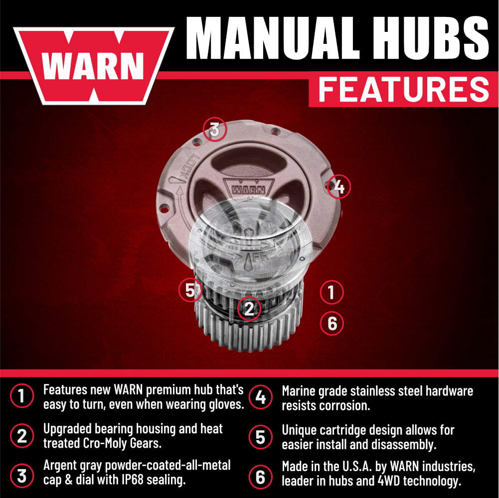 WARN 108325 Premium Manual Locking Hubs for 2005–2026 Ford Super Duty F‑250, F‑350, F‑450, and F‑550 – 35‑Spline, Heavy‑Duty Manual Hubs, Set of 2 (Argent Gray)