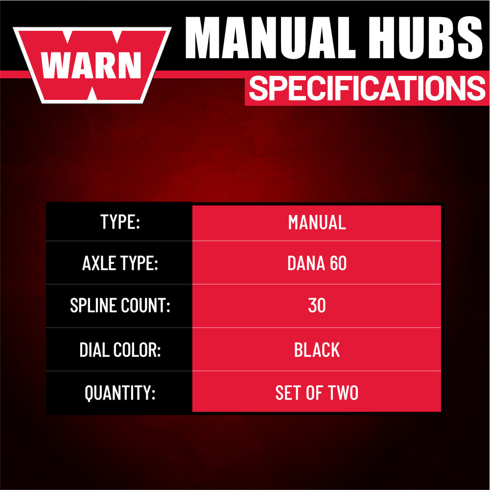 The WARN 11690 Standard Manual Locking Hubs deliver dependable 4WD engagement and long‑lasting durability for vehicles requiring 30‑spline hub applications.... Read more
