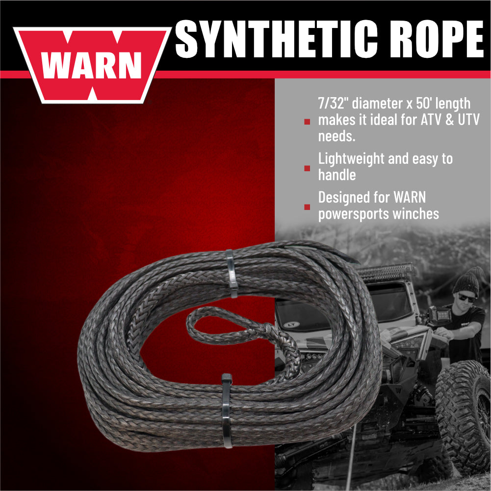 WARN 78388 Replacement Synthetic Winch Cable Rope-7/32" DiameterX50' Length Lightweight, High‑Strength Synthetic Line Compatible with WARN Powersports Winches Durable, Easy‑Handling Recovery Rope