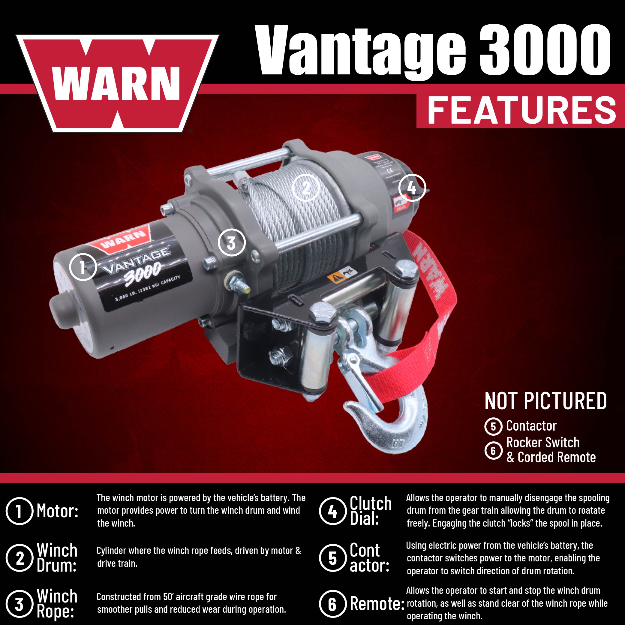 The WARN 108213 Vantage 3000 Winch delivers 3,000 lb pulling capacity, durable wire rope, sealed motor, and smooth planetary gearing... Read more