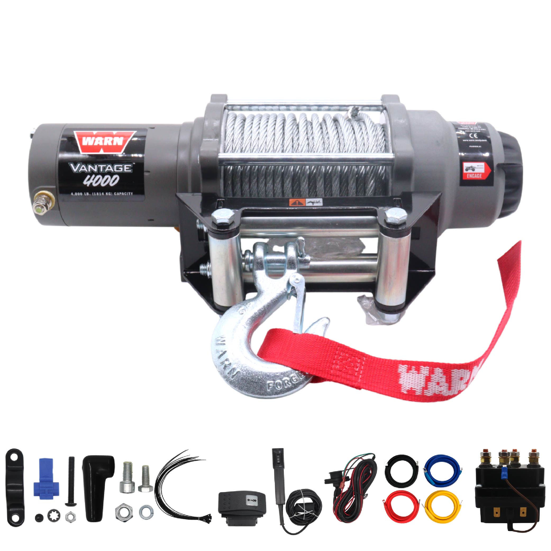 WARN Vantage 4000 12V DC Electric Winch for ATV UTV Side-by-Side - 4000 lb Pull Capacity, 55 Ft 7/32" Steel Wire Rope, Roller Fairlead, Fully Sealed, 3-Stage Planetary, Wired Remote (108214)