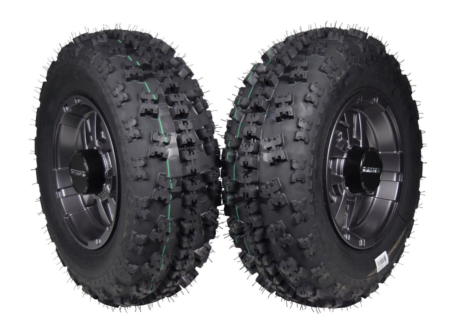 MASSFX 21x7-10 Front Tires & Gun Metal Wheel Kit for ATV, UTV, & SxS - 4-Ply-2pk